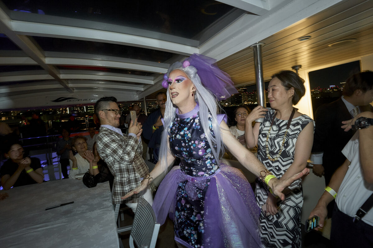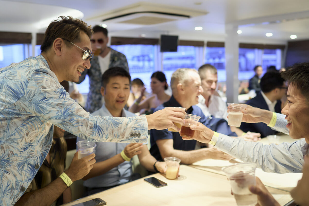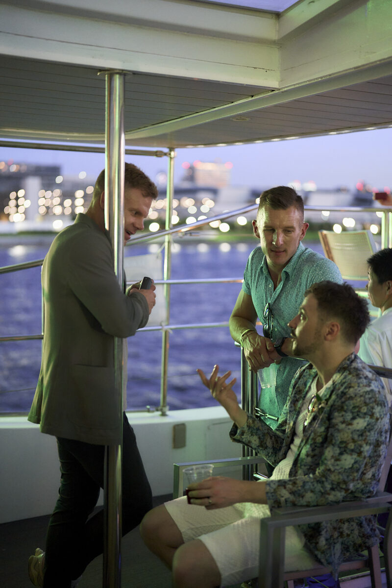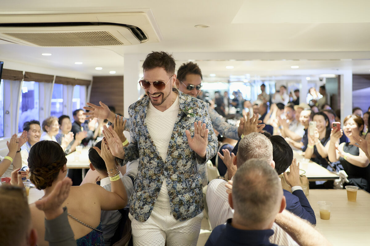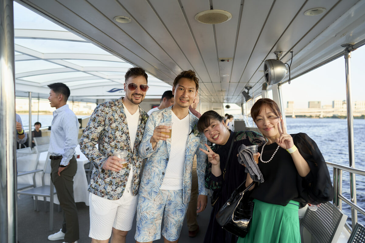 東京湾へくり出すサンセットクルーズ夕日に染まる東京の街船の上でしか体験できない時間鏡開き、太鼓、三味線、ピアノ、ドラッグクイーン130名のBig PARTY!あの日見た最高の景色が、ふたりの人生を支えていくものになりますようにProduce:Revolvo https://revolvo-wedding.comPhoto:Syuhei INOUE https://syuheiinoue.life