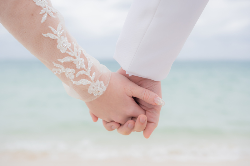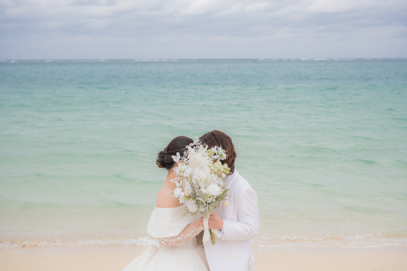 \大満足のフォトウェディング/こだわりPOINT・せっかくなら全部着ちゃおう!和装&洋装2着プラン・スタジオフォト&屋上、そして徒歩1分のビーチ撮影♪・ヘアメイクもアップスタイル&ダウンスタイル、どちらも叶えました♡チャペルさながらのスタジオで、指輪交換&誓いのキスを行いました。感動の瞬間、思わず目には涙が。大切な一瞬をフォトウェディングでかたちに残すことができました◎