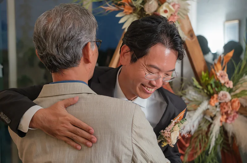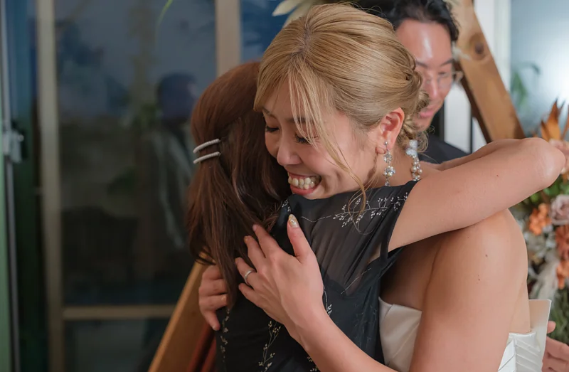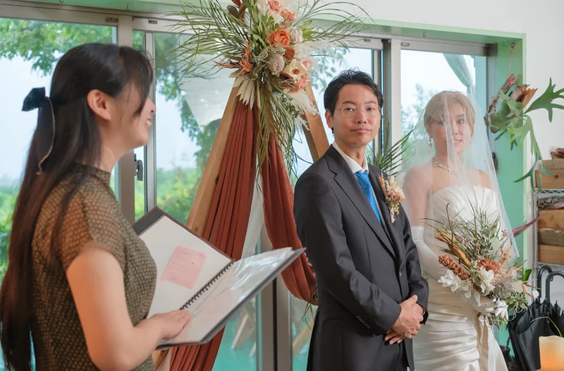 \瀬底島のカフェでプライベートなウェディング/こだわりPOINT・家族とゆっくりお食事を楽しみたい・料理人に入ってもらいこの日だけの特別なメニューを実現♡・沖縄旅行を兼ねたウェディング、司会者は沖縄のトークで花を添えました♪お食事前には挙式セレモニーにてリンケージタイム。開演前はカフェのお庭でフォトウェディングも叶いました。家族の絆を感じる心温まるお時間となりました。