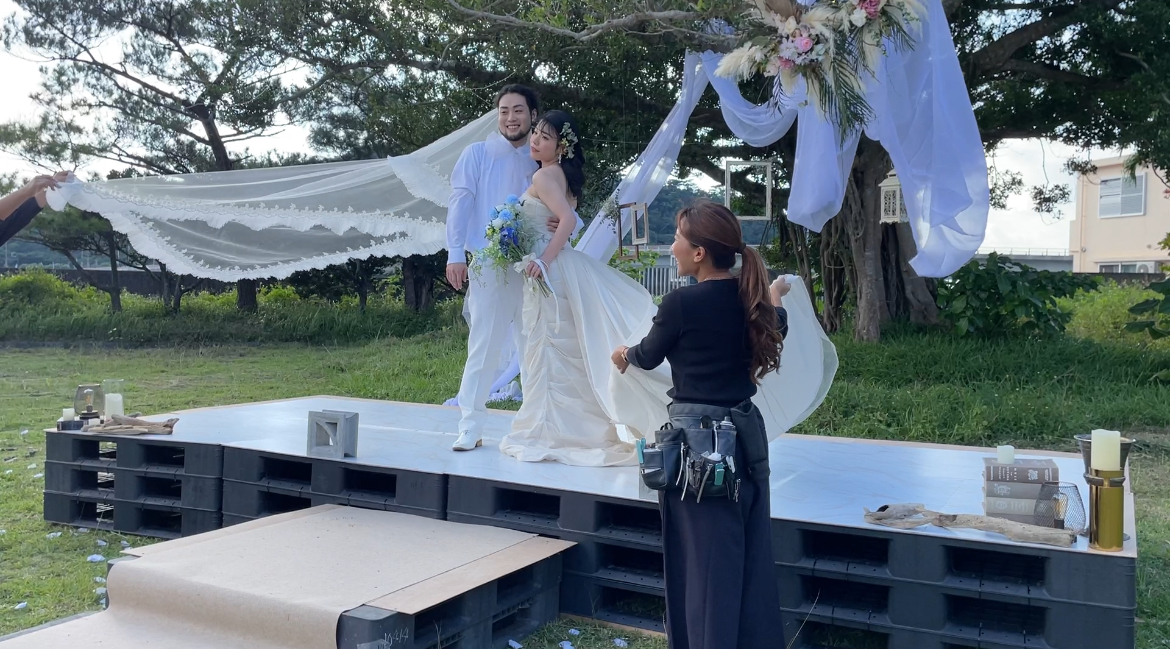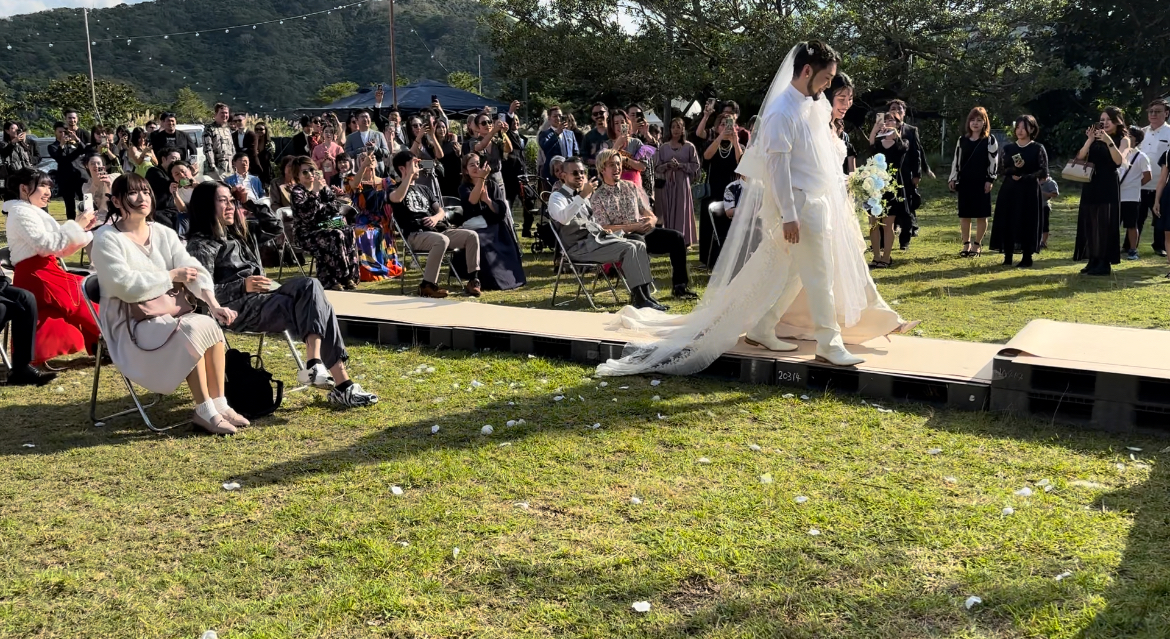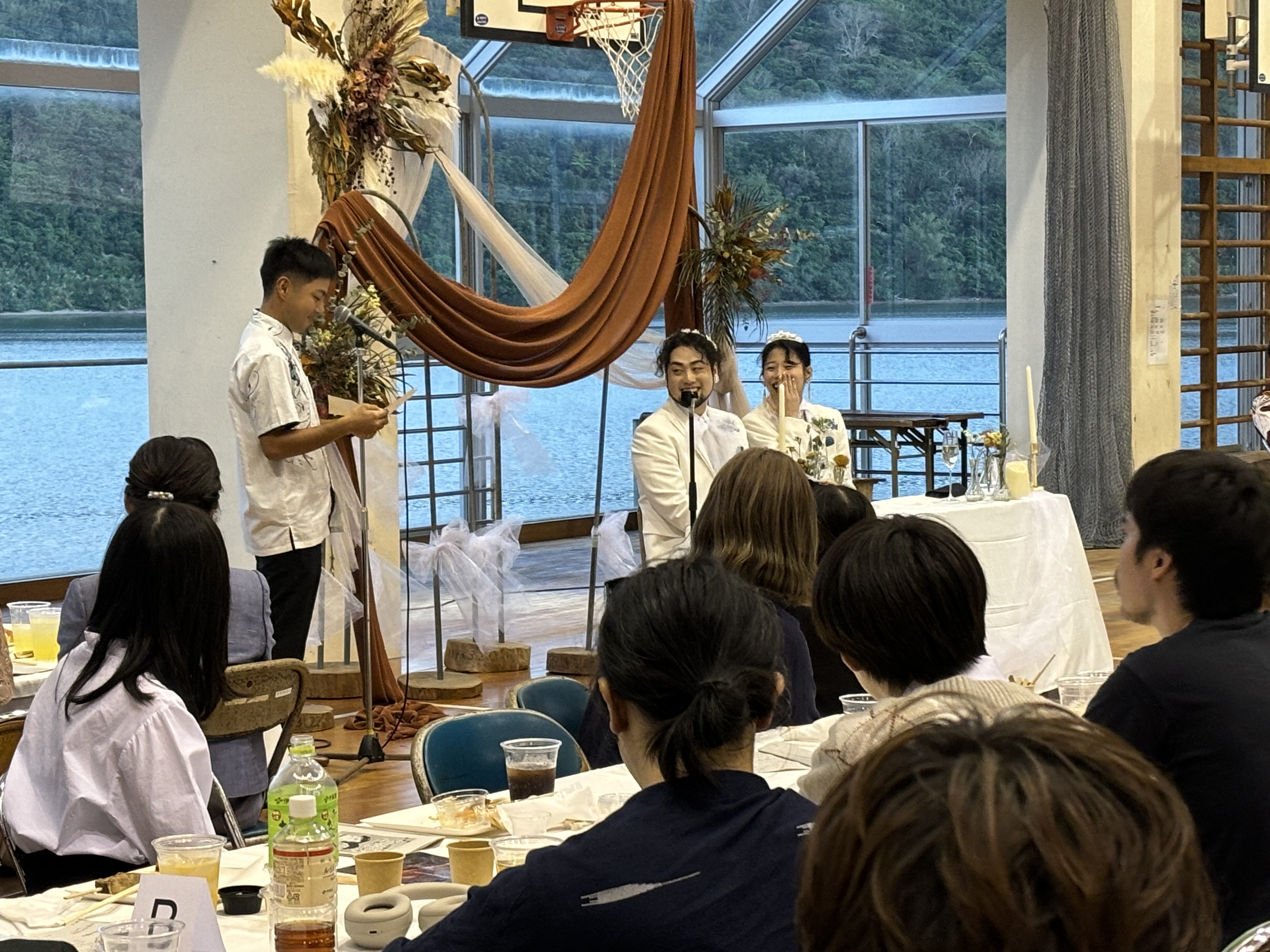 \母校で叶えるこだわりのウェディング/こだわりPOINT・小学校の中庭を使用しての挙式・披露宴は海が見える体育館で!余興も盛りだくさん♪・自分らしい衣装を身に纏った主役のお二人♡隅々までこだわりが光るウェディング。南国感あふれるお料理は見て楽しく食べて絶品!ご試着を重ねて決定した大好評の衣装にもご注目でした◎