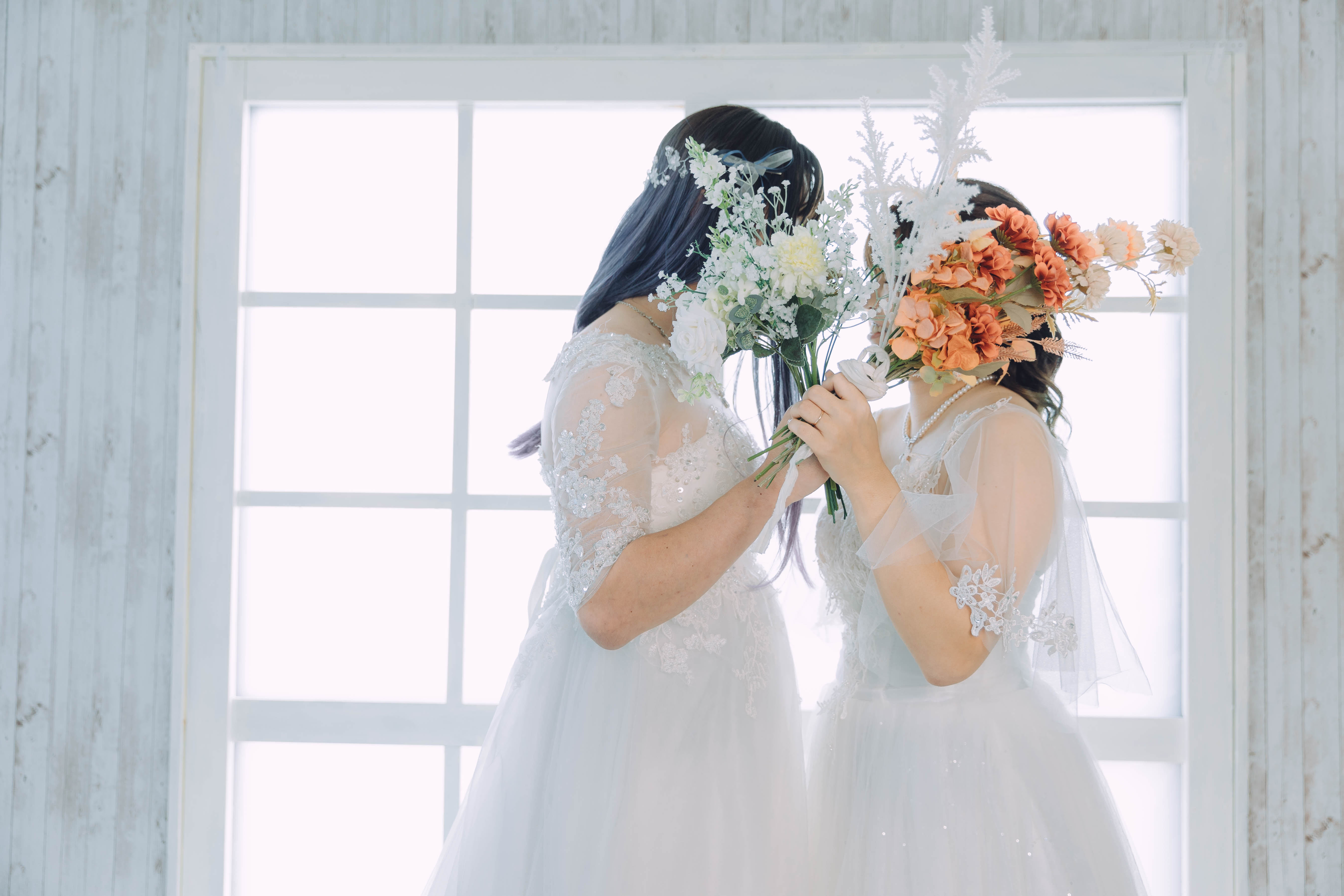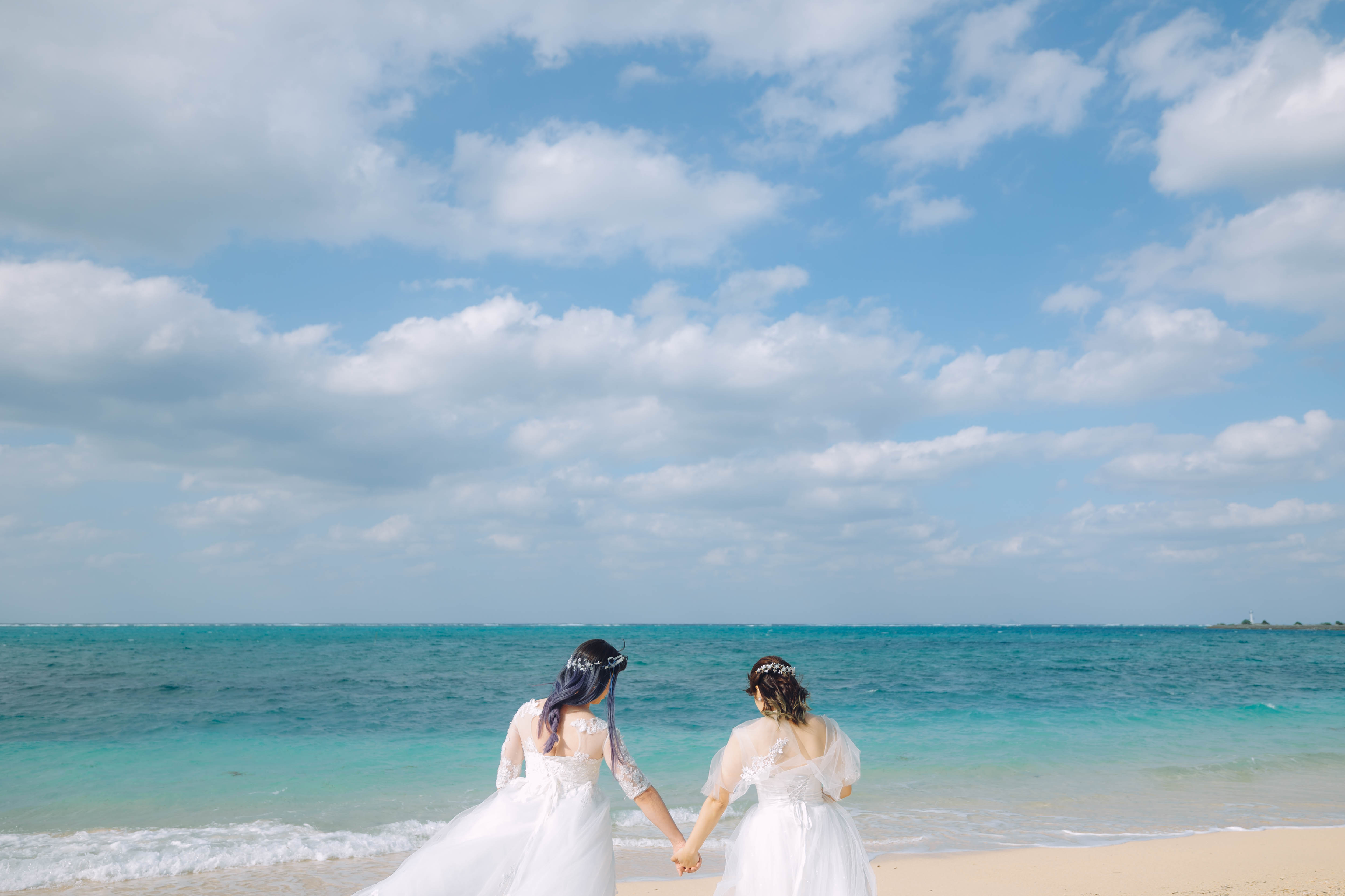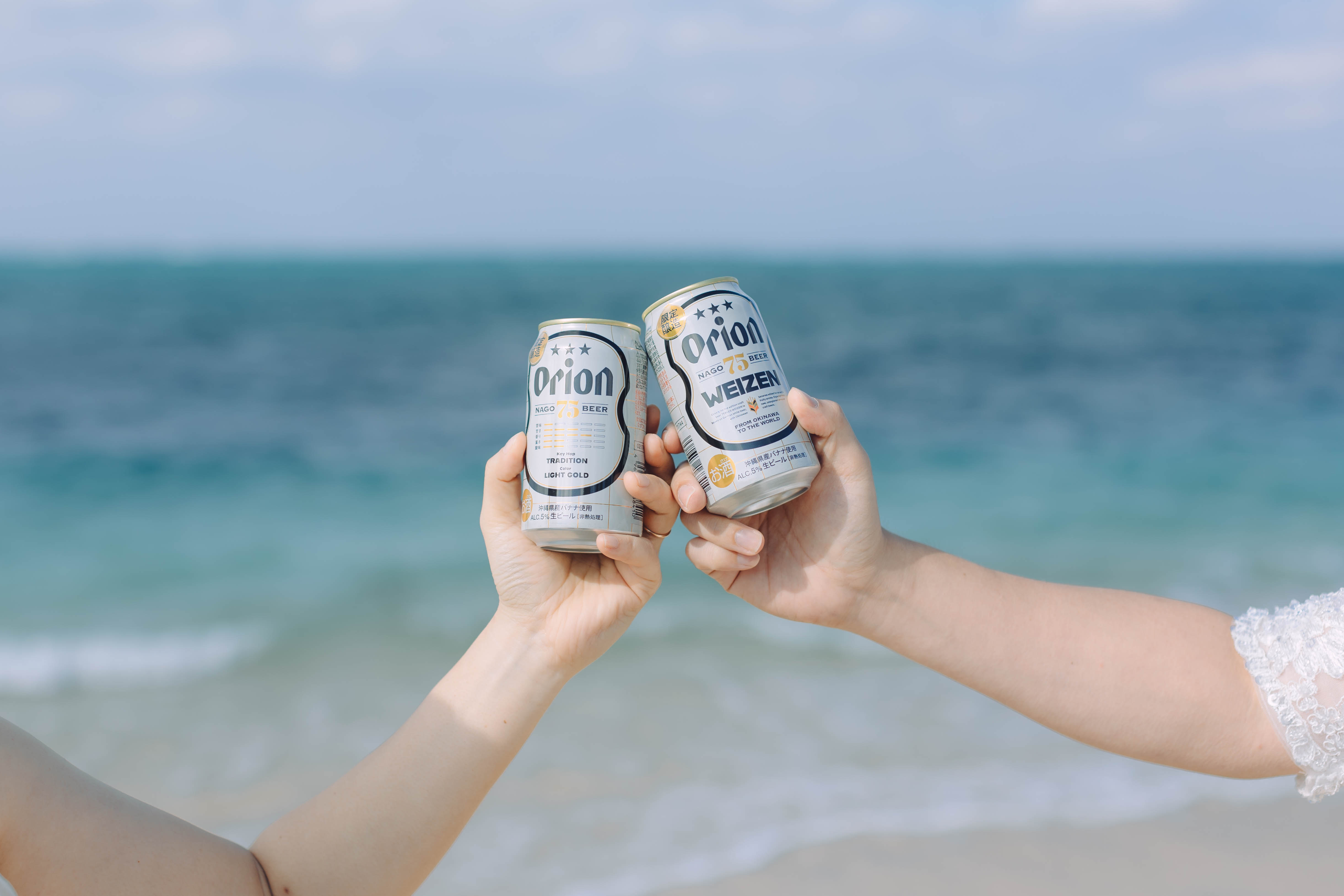 \Wウェディングドレスが映える!/こだわりPOINT・二人で夢のウェディングドレス・スタジオ&ビーチでの撮影・お酒好きな二人らしいアイテムを持ち込んで♪ビールやボトルを使用して楽しい撮影!スタジオから徒歩0分のビーチ撮影も入れて大満足のフォトウェディングに♡