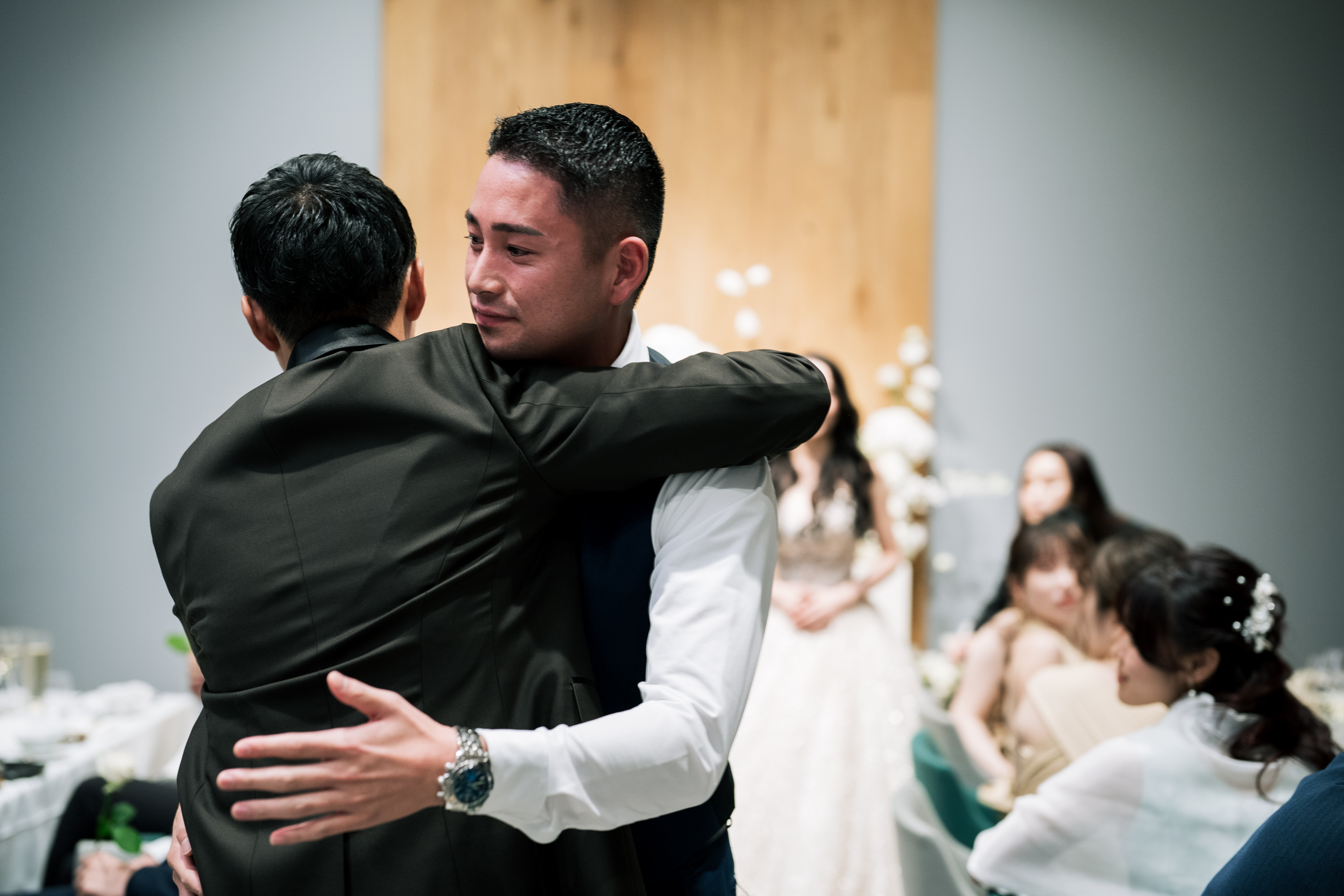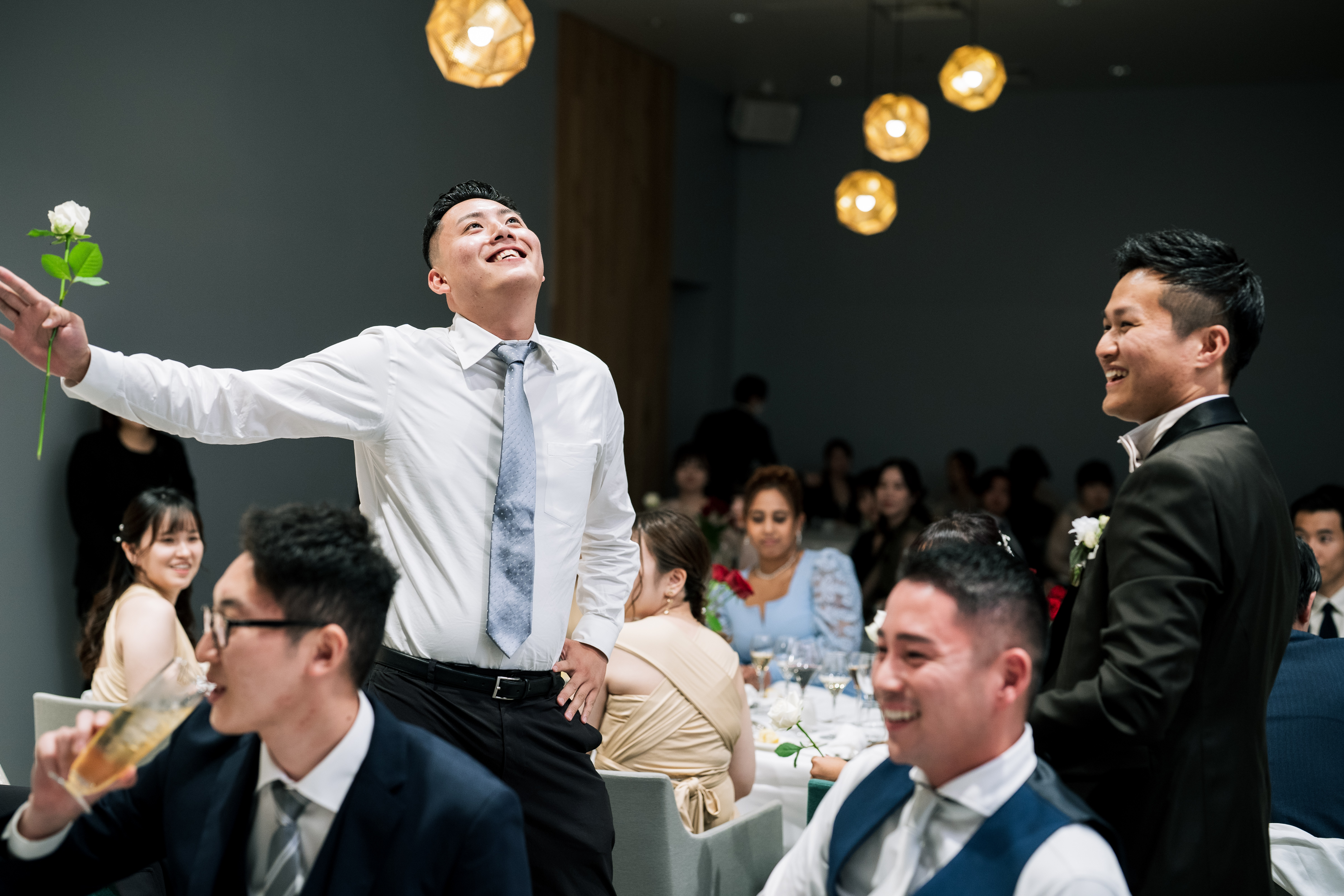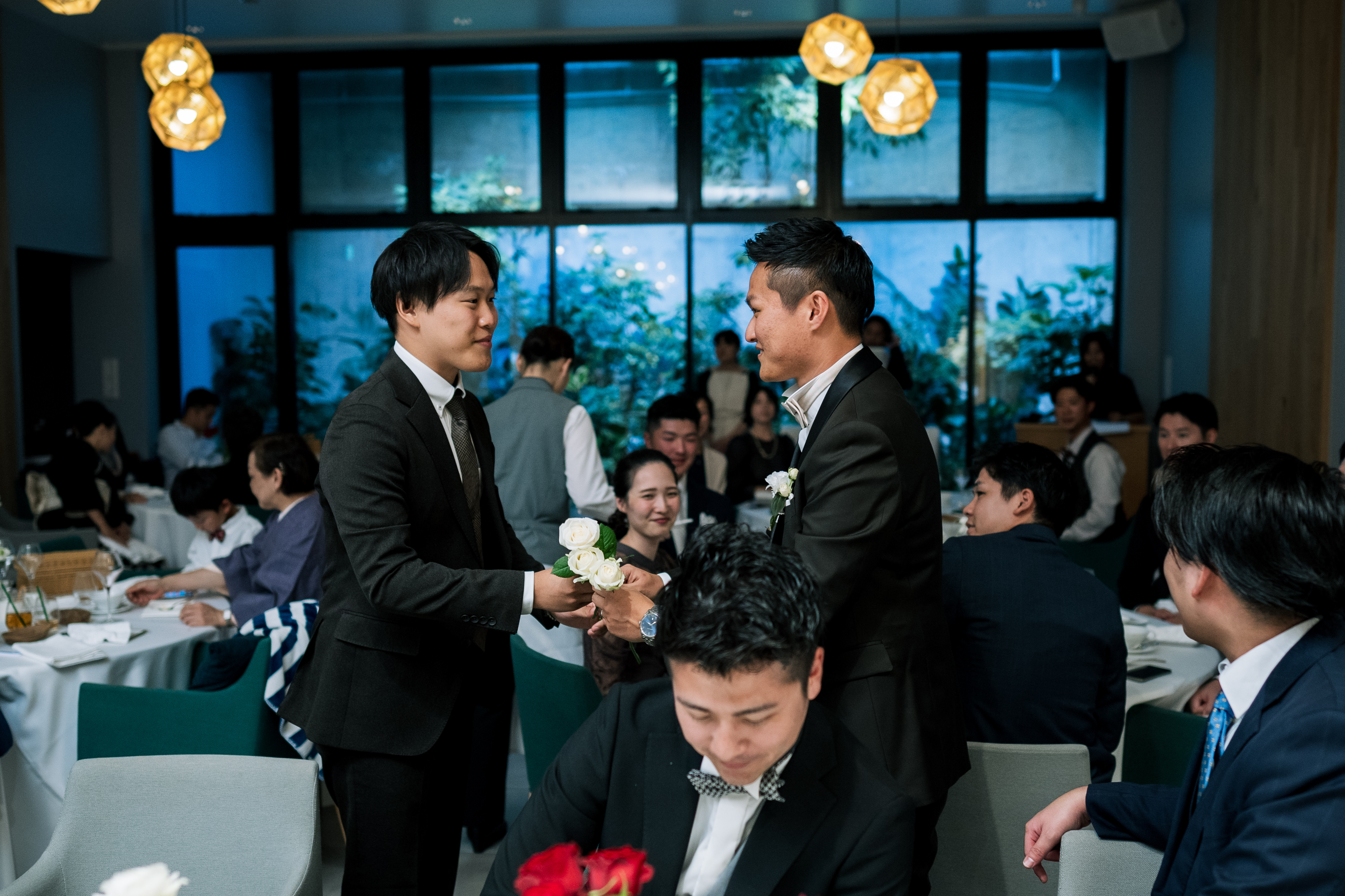 ご友人がたくさんいらっしゃり、ご家族やご友人の輪の中心にいつもいるような新郎と