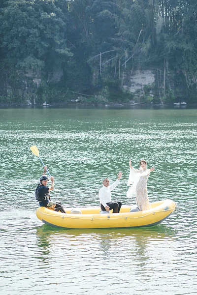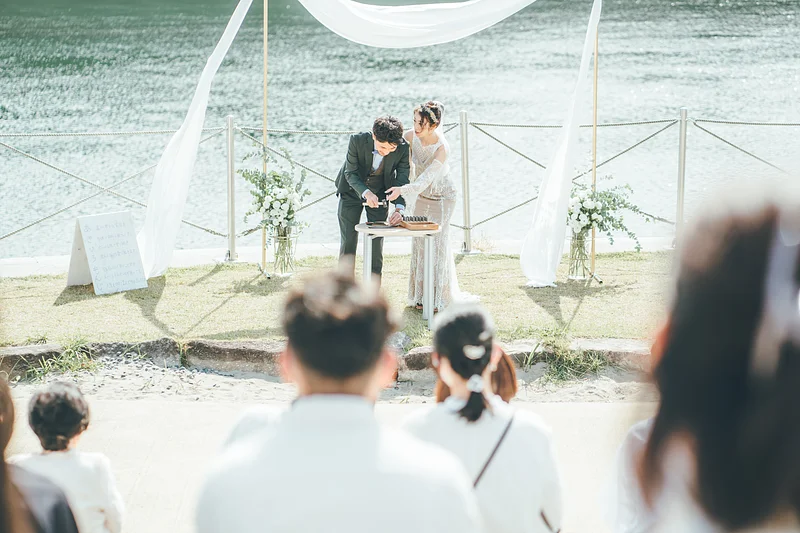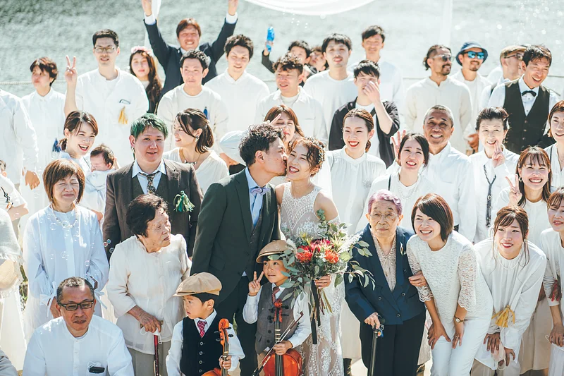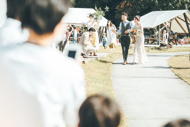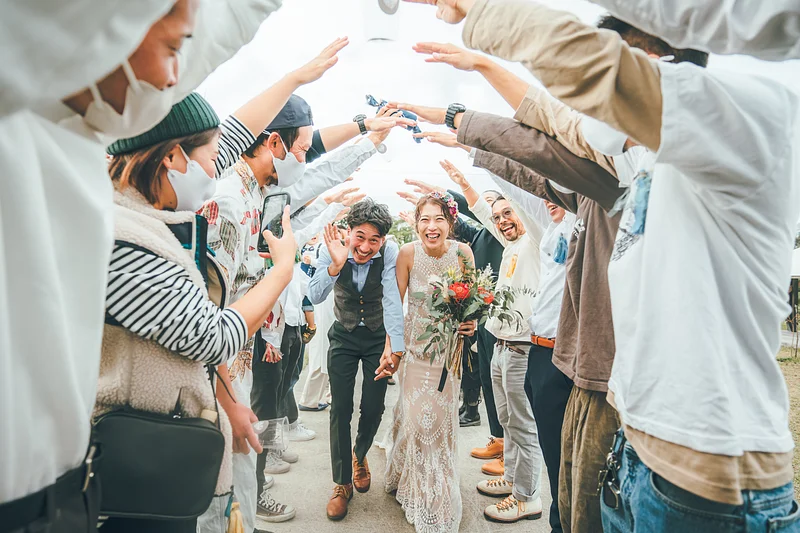 (テーマとは裏腹に、スッタフもしっかりおもてなしする新郎新婦)