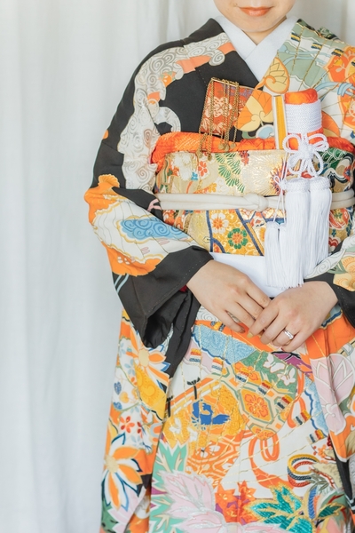 お二人は、ご親族のみでの神前式と食事会を経て、カジュアルなアフターパーティーを予定していました。そんなお二人から「新郎のお母様からいただいた着物で、ウェディングフォトを撮りたい」とご相談いただきました。