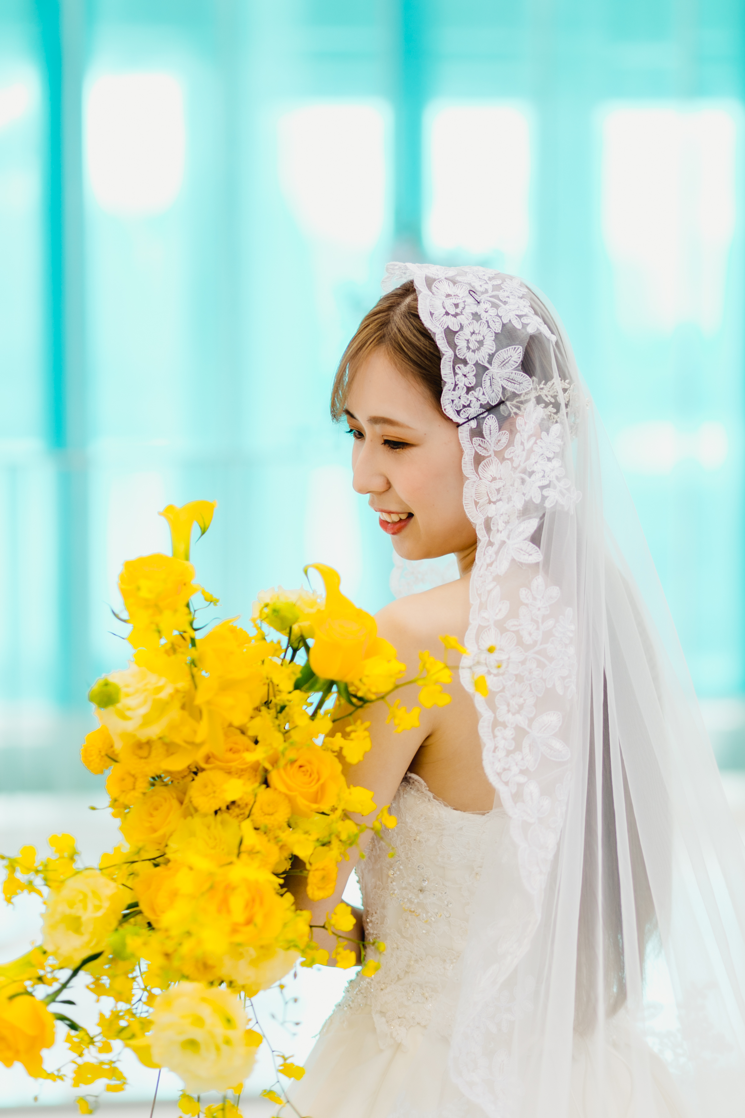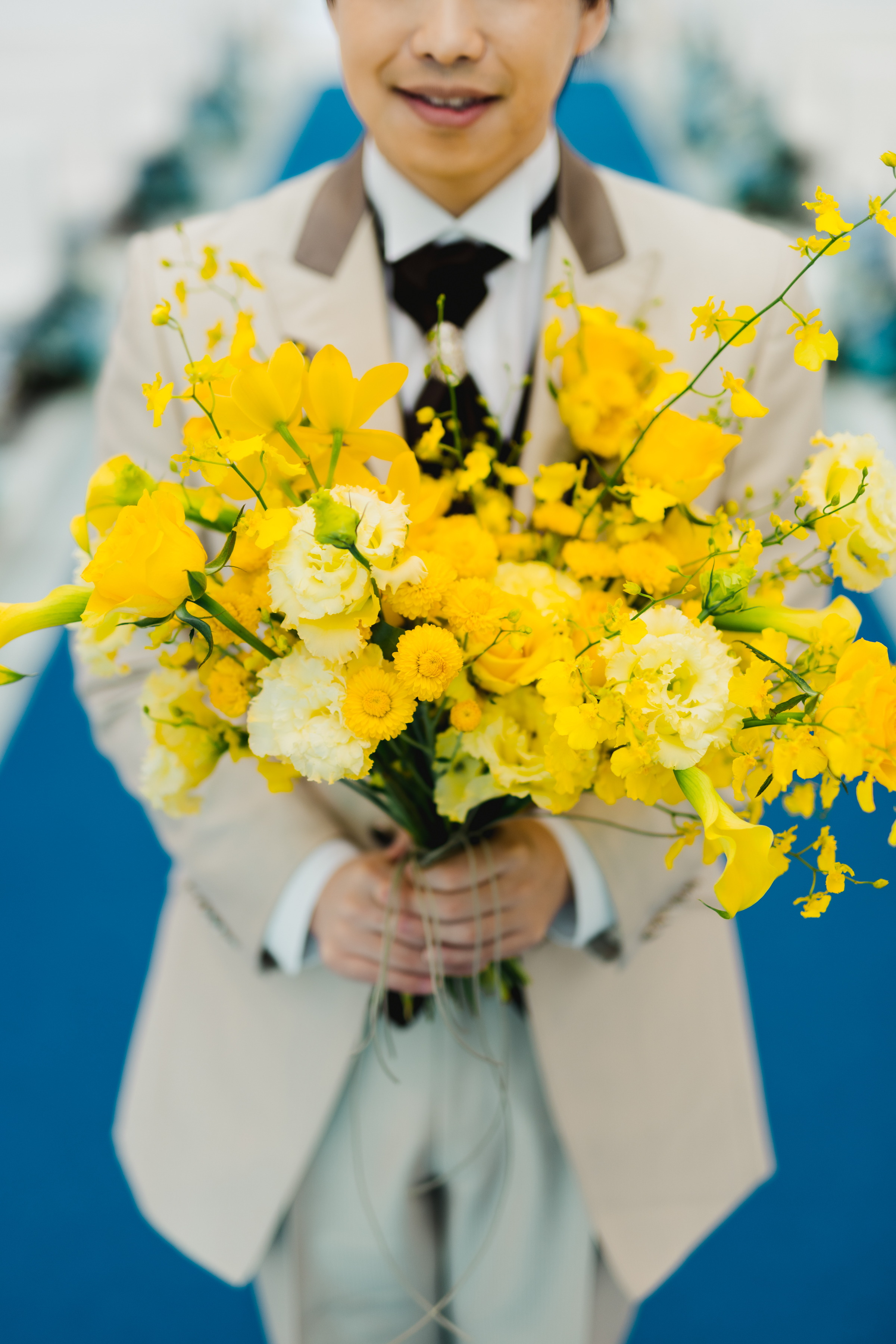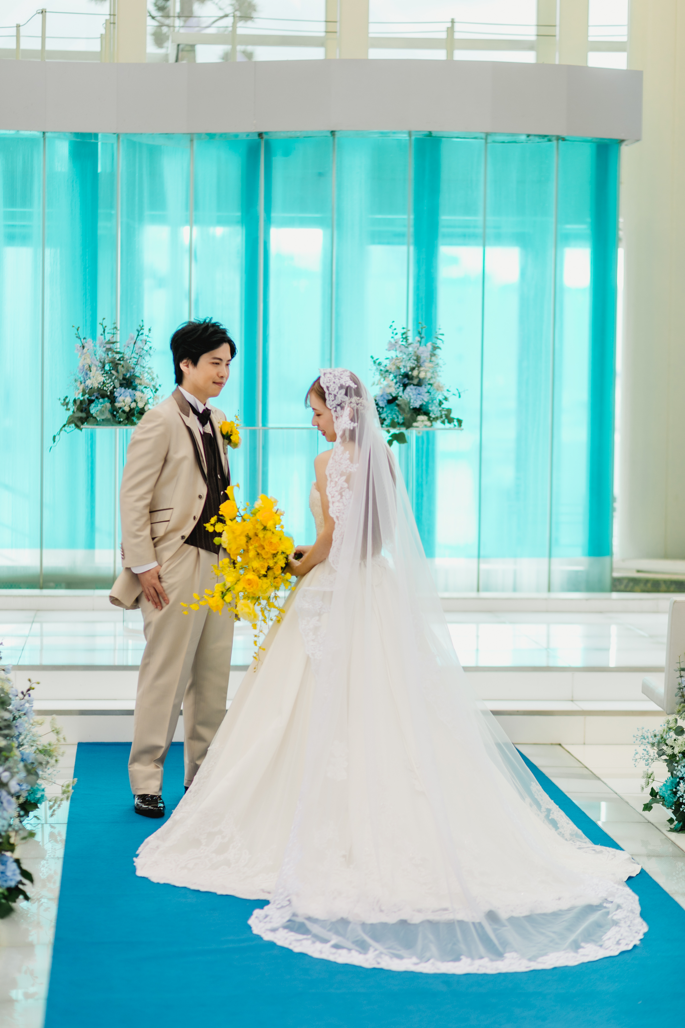 結婚式当日は、会場装飾もロビーもウェディングブーケも黄色一色!