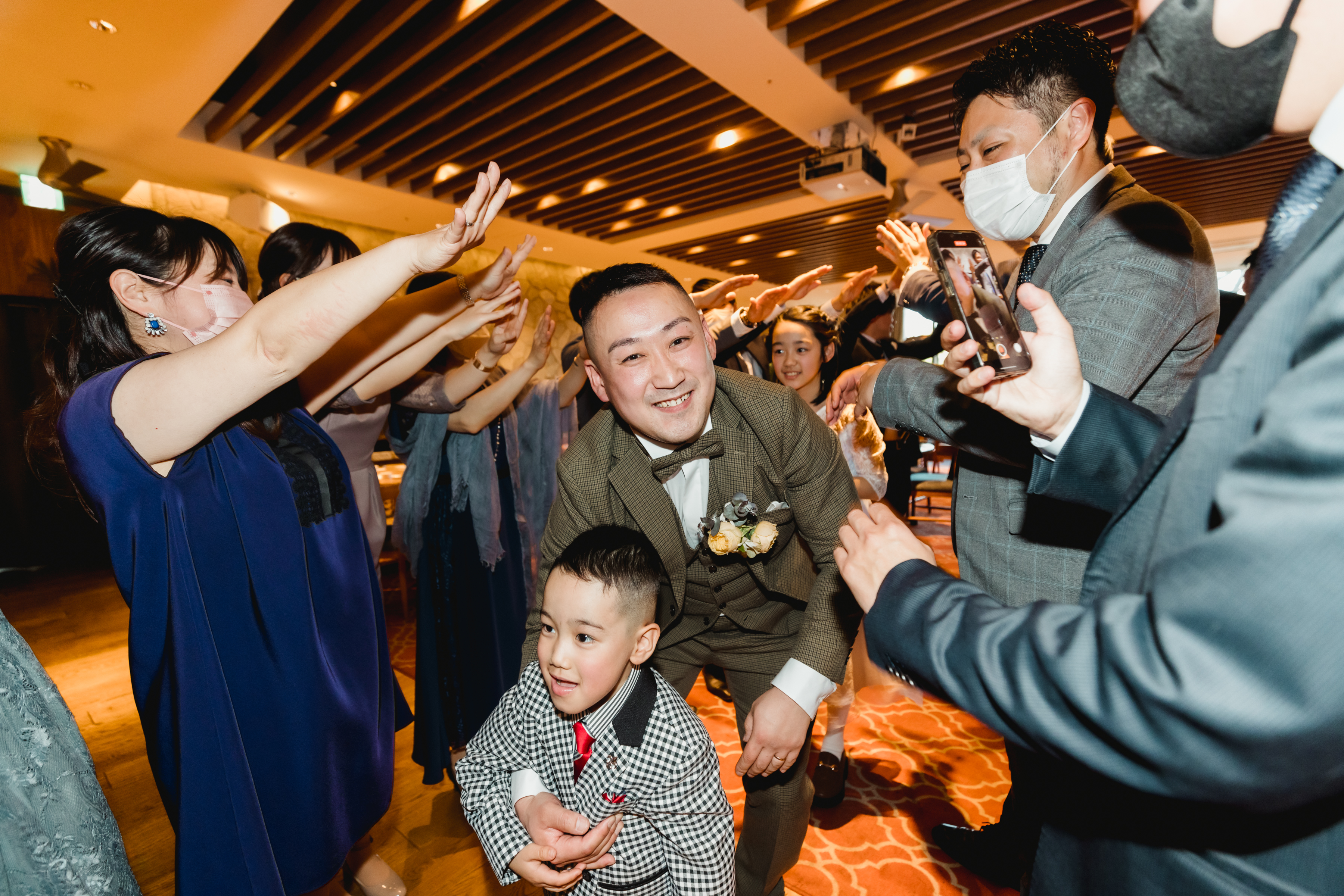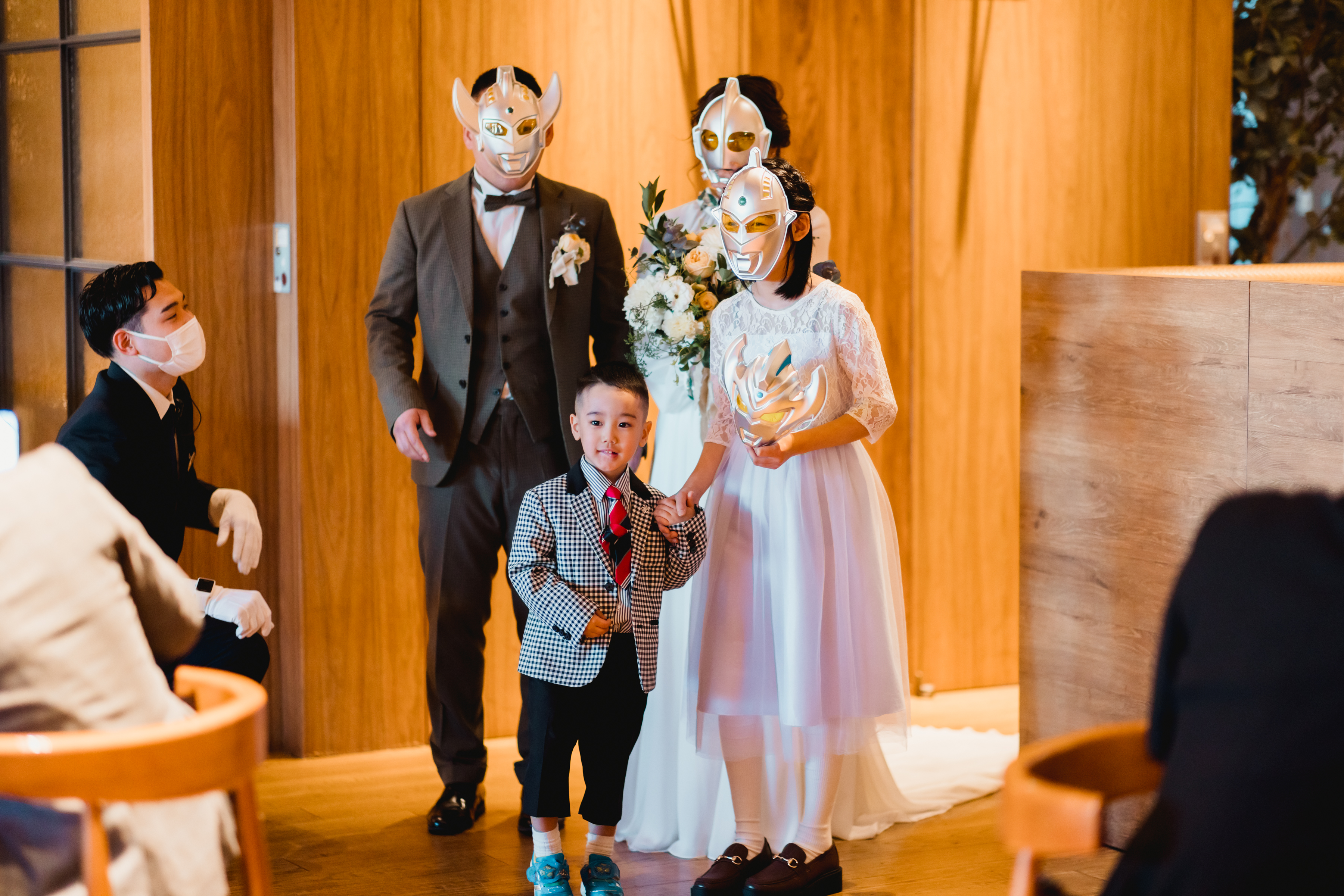 パーティ入場は長男の大好きなウルトラマンのテーマソングで、ウルトラマンの仮面をつけて♪