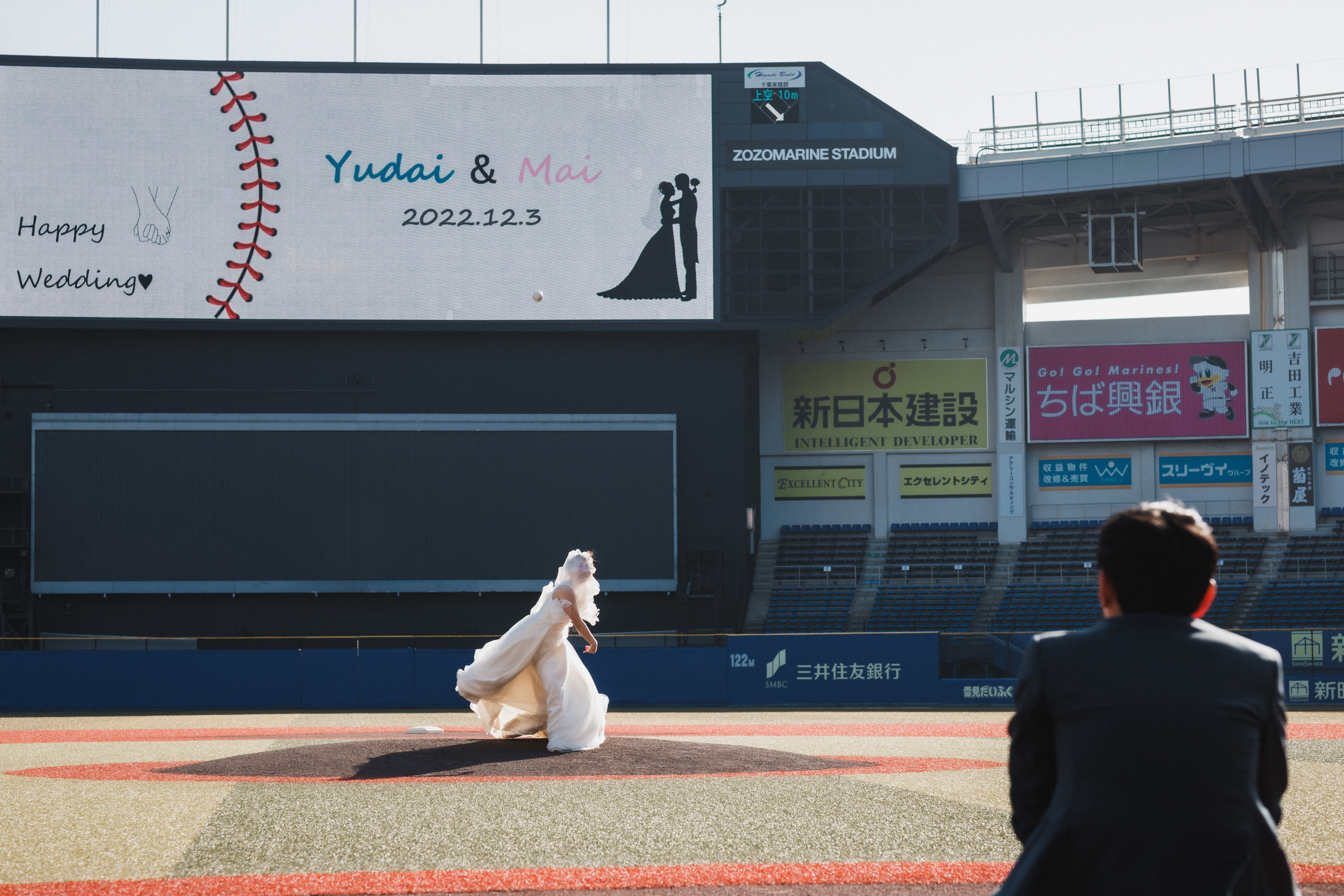 そして、ウェディングドレスへ着替え、ZOZOマリンスタジアムへ!