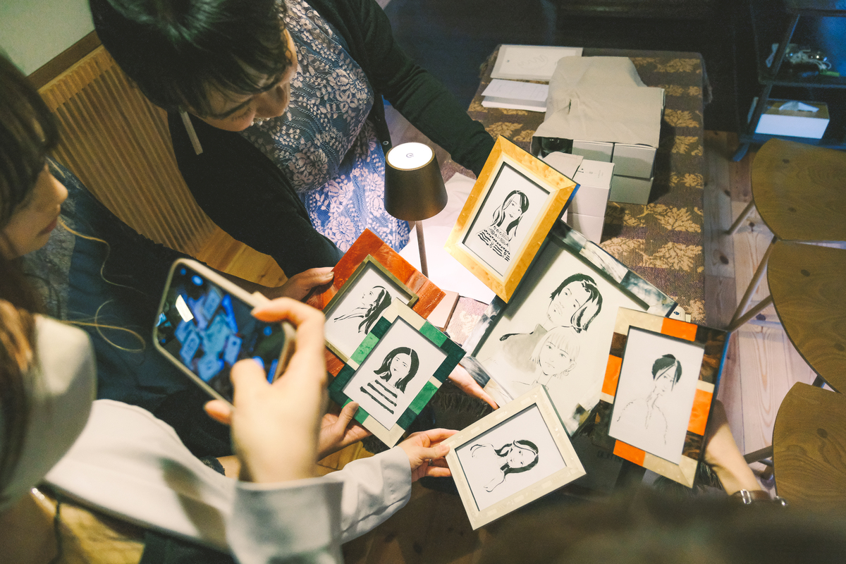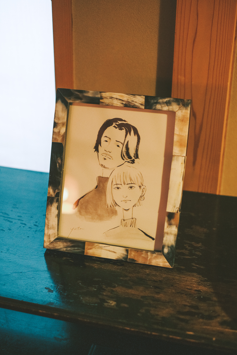 フォトフレームの中には、新郎さまが手書きで描かれたゲストの方の似顔絵も用意。
