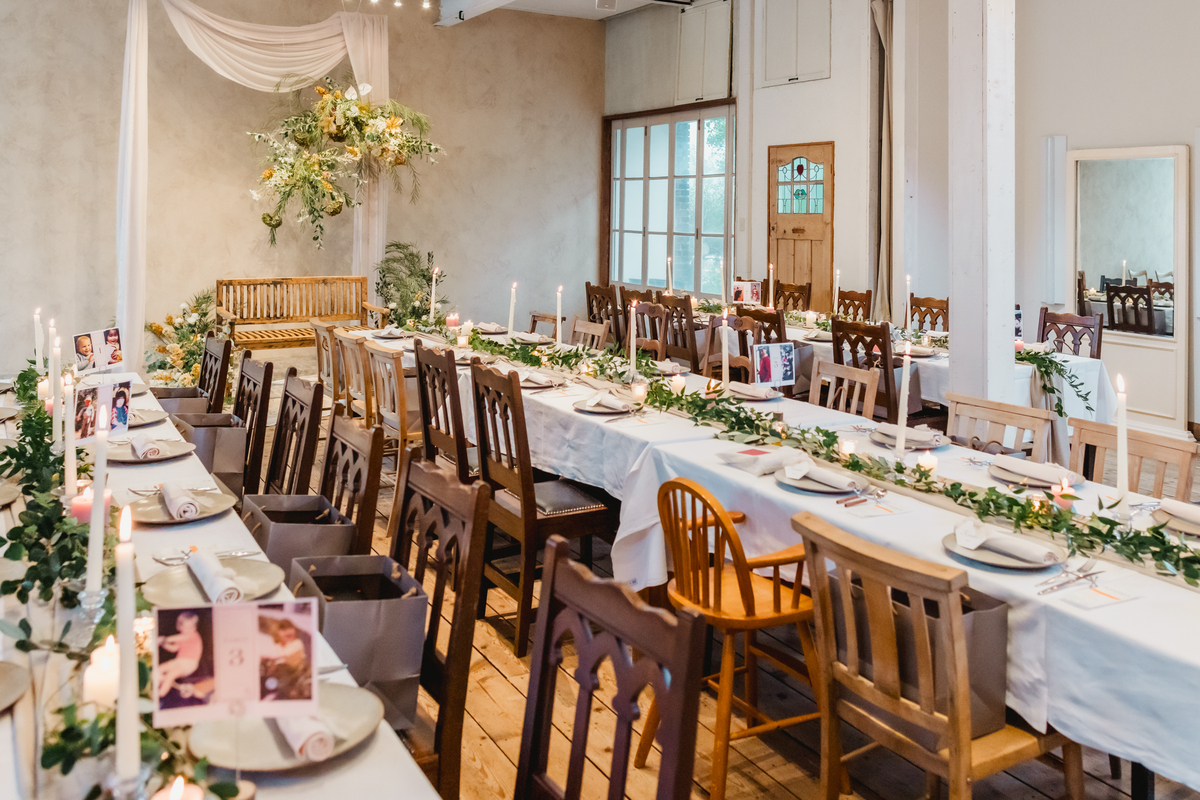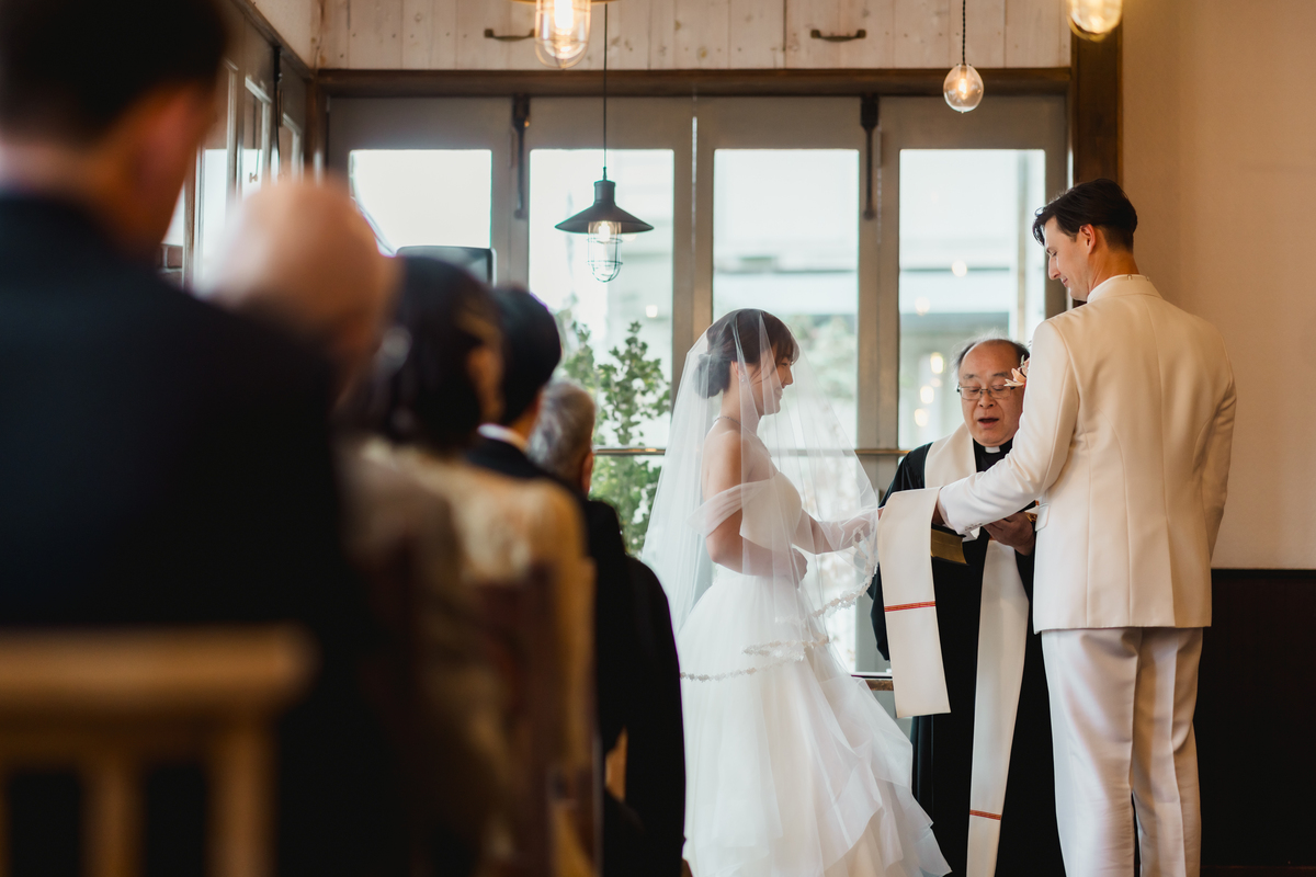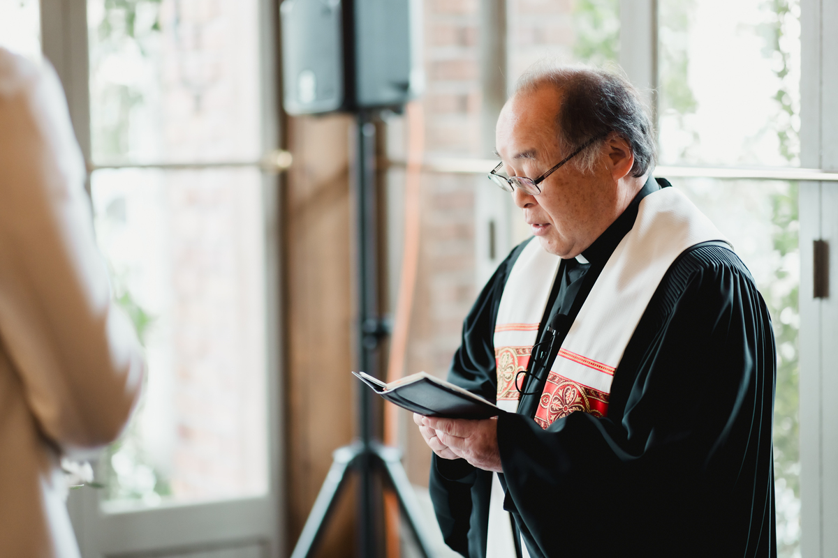 ・新婦さまが幼少期からお世話になっていた、牧師先生に挙式を執り行って頂くこと。希望を叶えるためにレストラン内で教会式を執り行いました。
