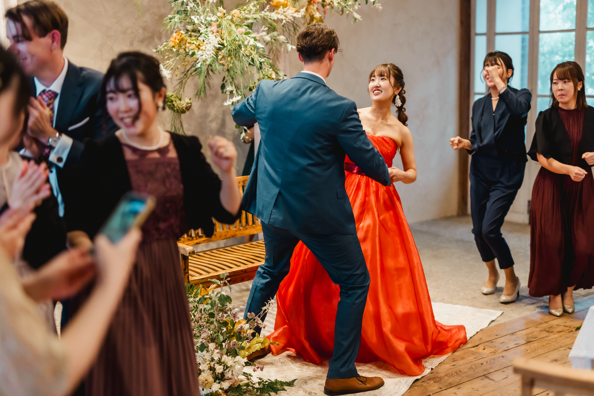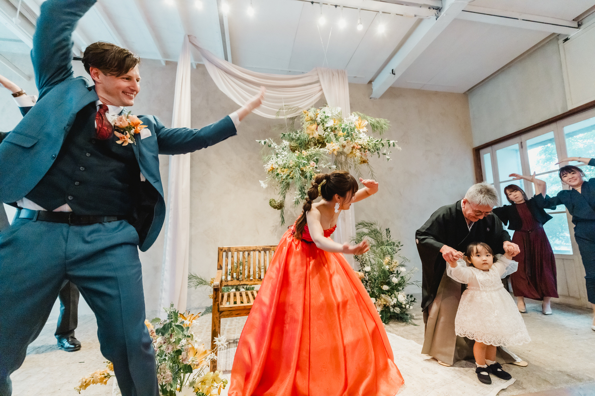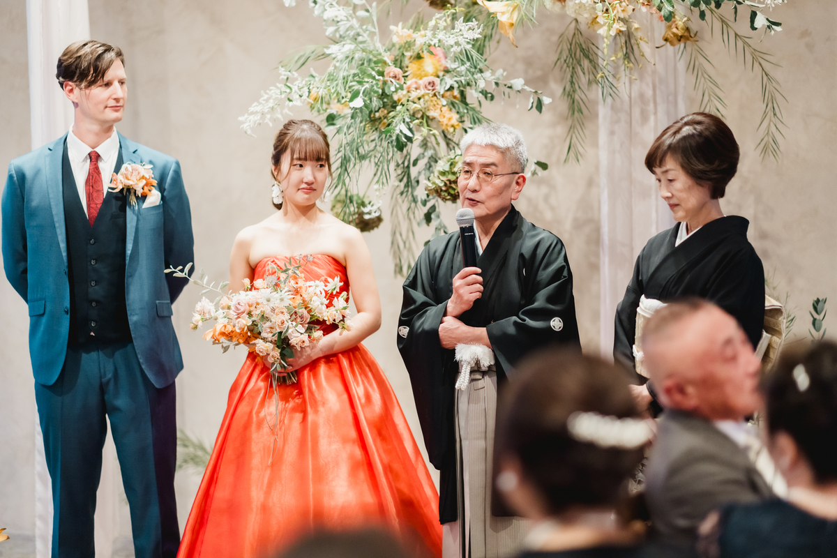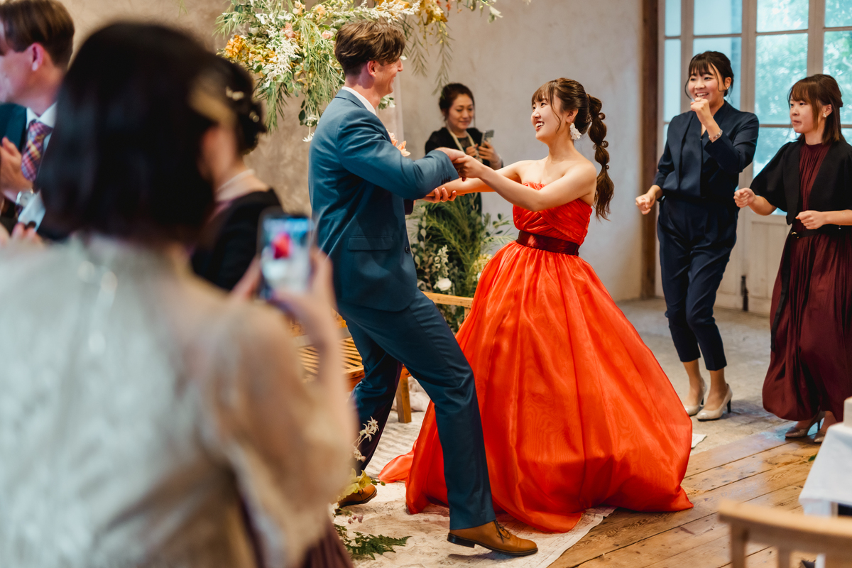 ・新婦のお色直しのドレスは名前にちなんだ茜色