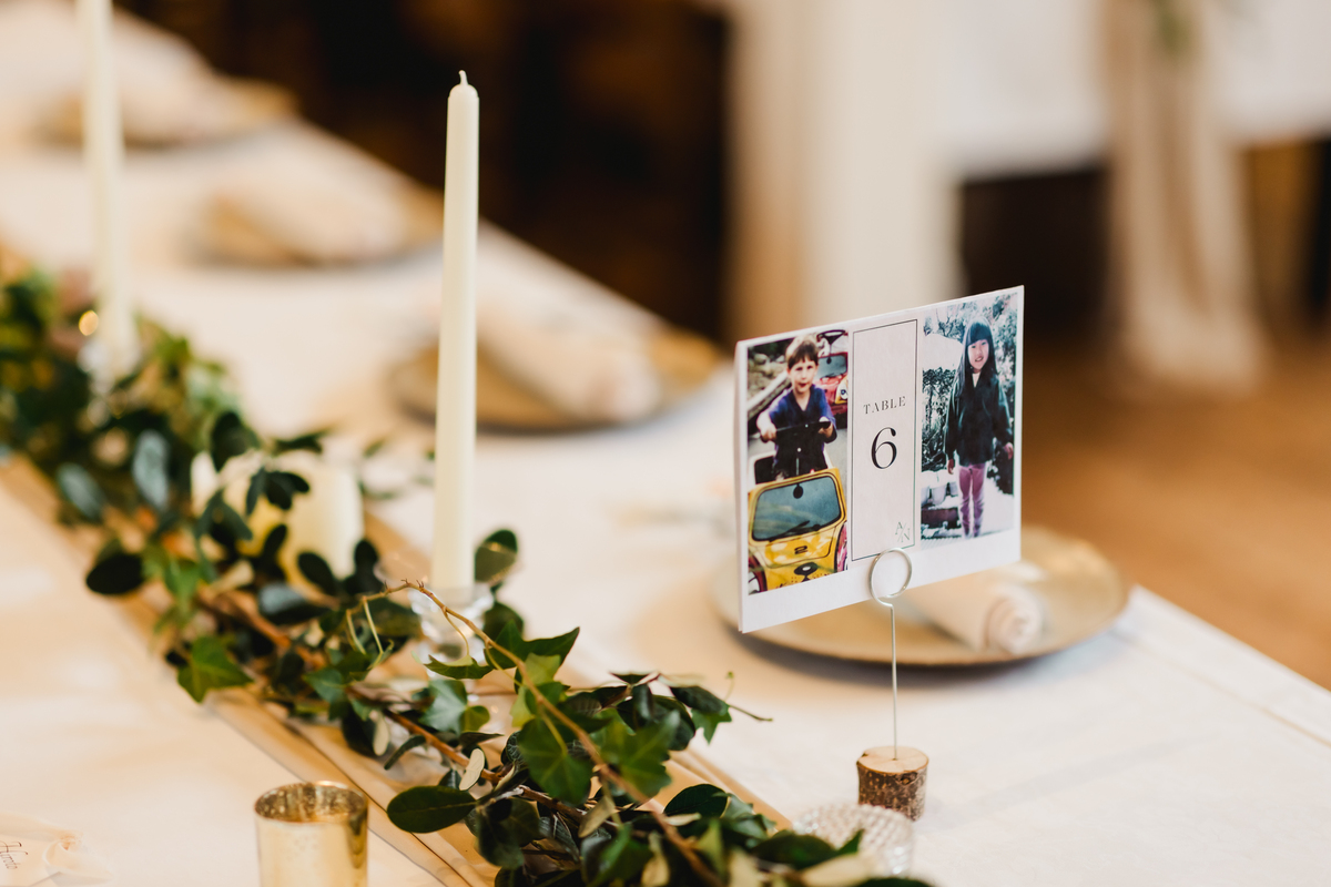 テーブルナンバーは数字に合わせて2人のその当時の写真を一緒に飾りました。とっても可愛い!と大好評でした。