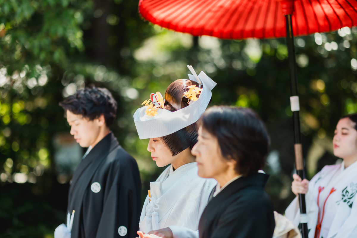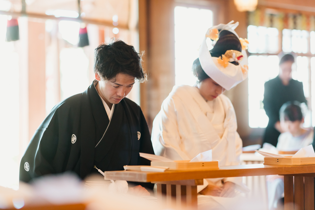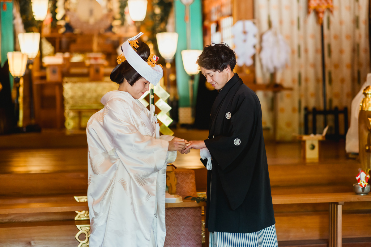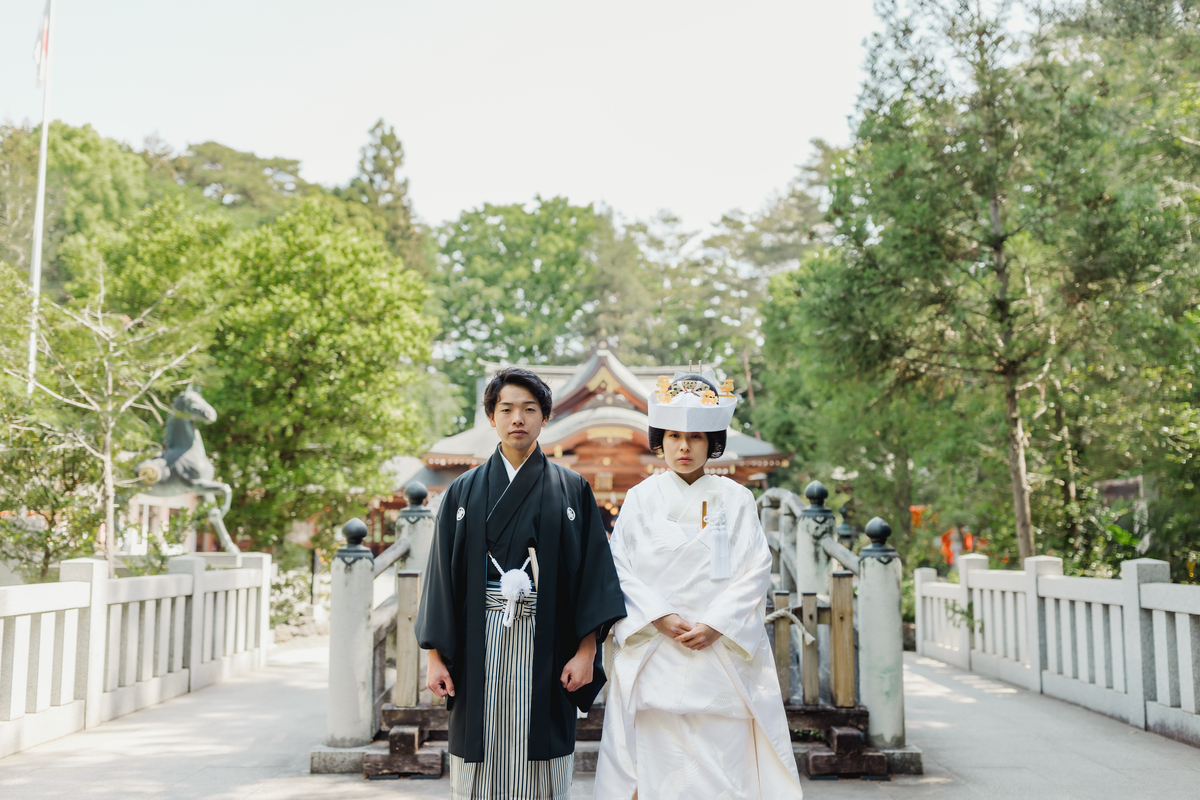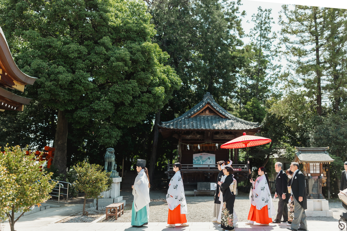 披露宴会場の近くの歴史ある神社での結婚式をご提案しました