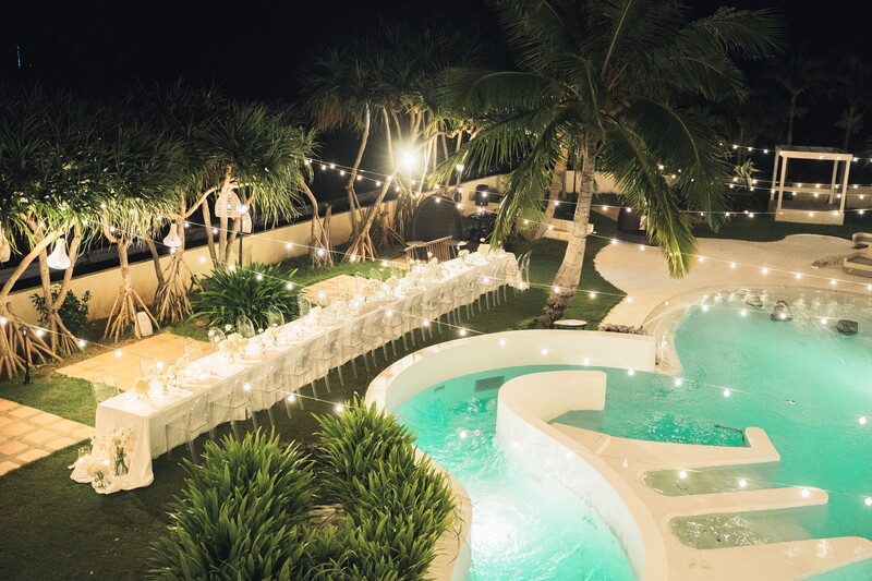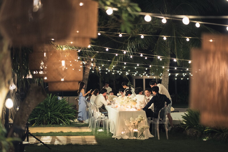 敢えて沖縄らしさは出さずにまるで海外リゾートのような上品で華やかな白に統一して創り上げた世界観シンプルに洗練されたものって、どうしようもなく心惹き込まれますナイトパーティは海辺での集合写真からスタートchill&breezyなギター演奏とともに夜も更けていきラストシーンは花火ショットで美しく夢のような時間…