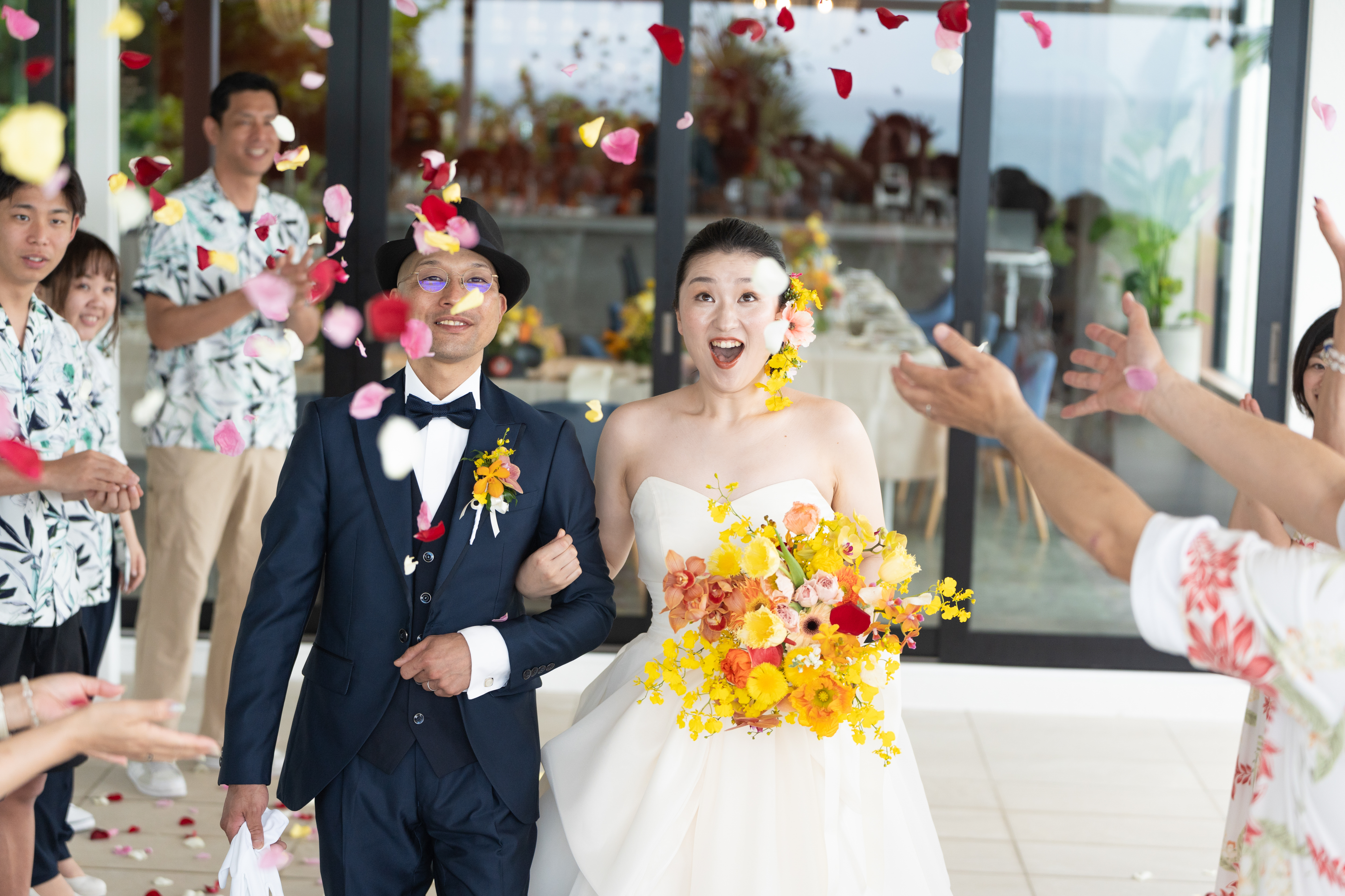ウェディングへの想いがたくさんあった新郎様新婦様と宮古島のWeddingのプロと素晴らしいレストランと熊本のWeddingプロデュースボアソルテがチームとなって素敵なウェディングを作ることが出来ました