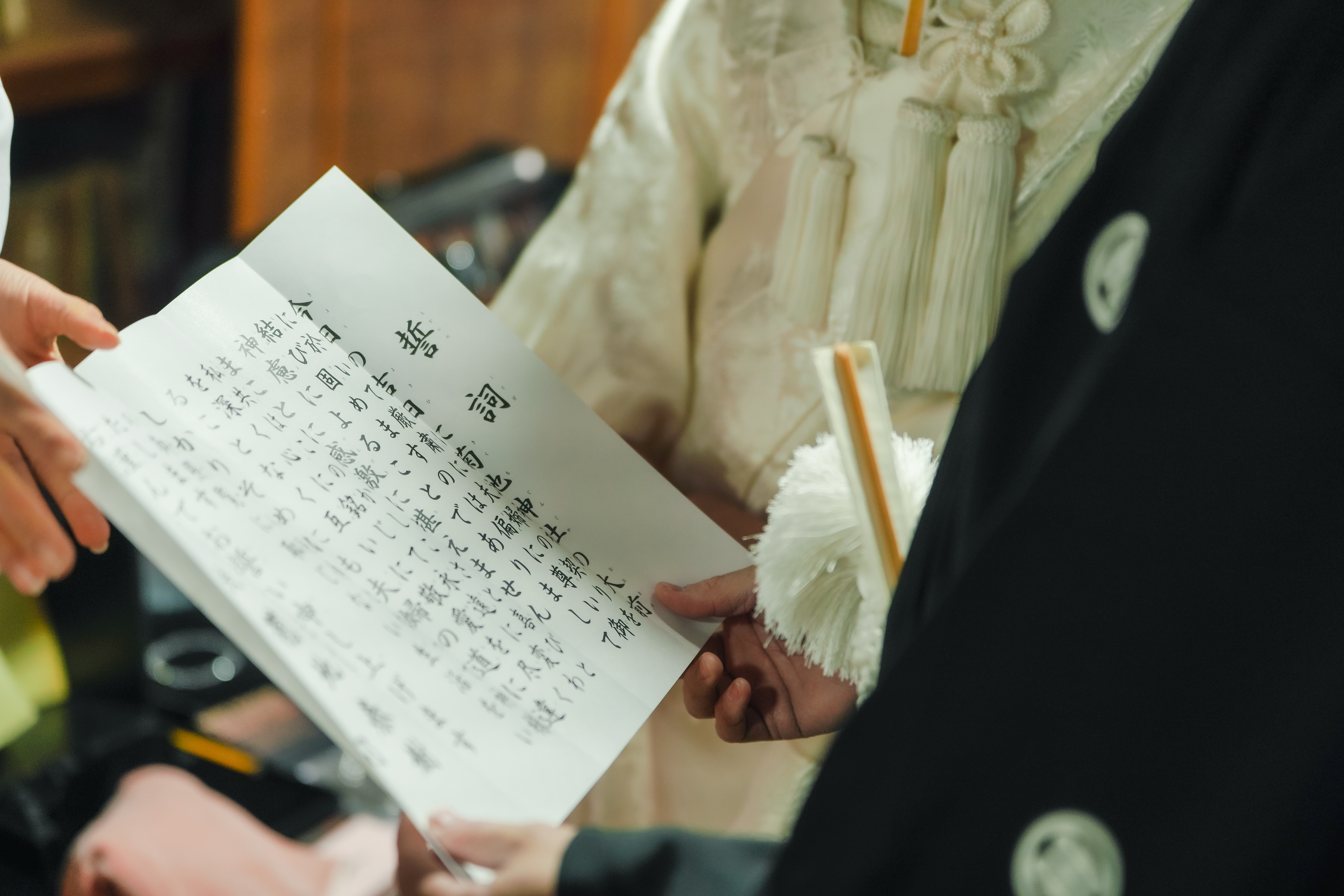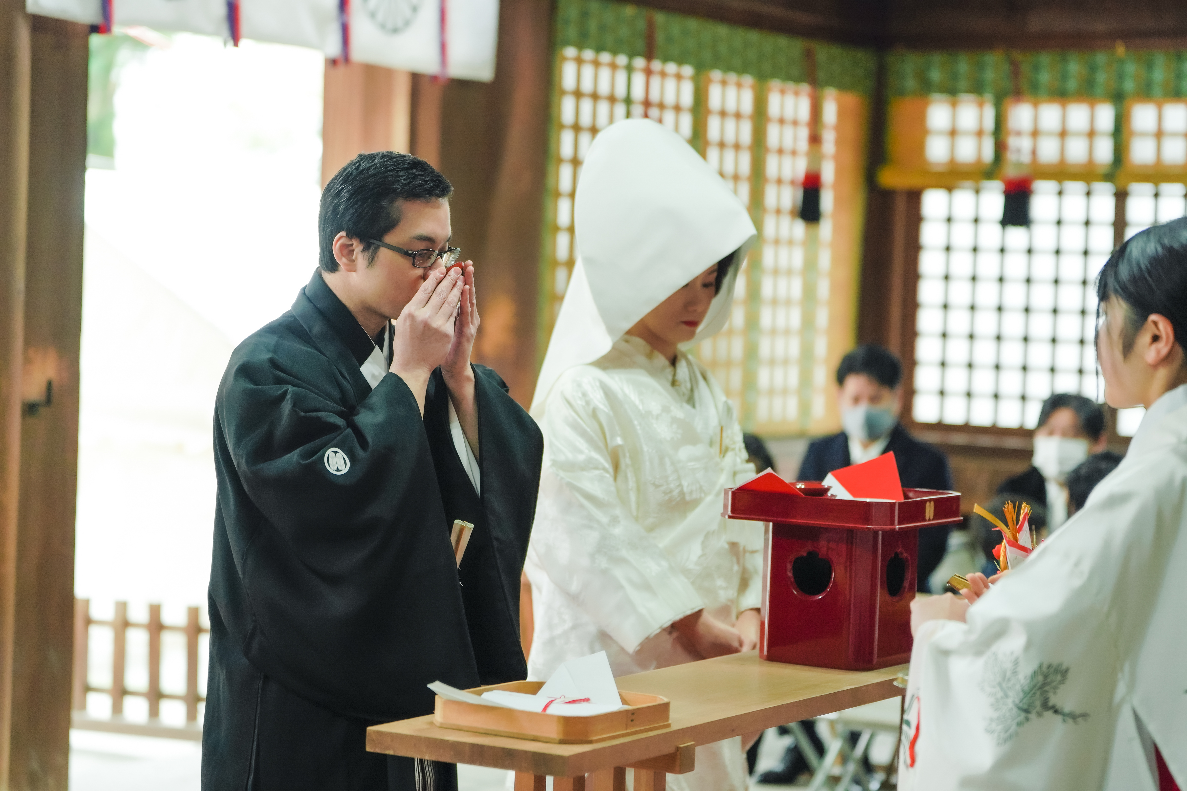 厳かな神前式のもと、新郎新婦は永遠の誓いを交わし、家族に見守られながら新たな人生の一歩を踏み出しました。