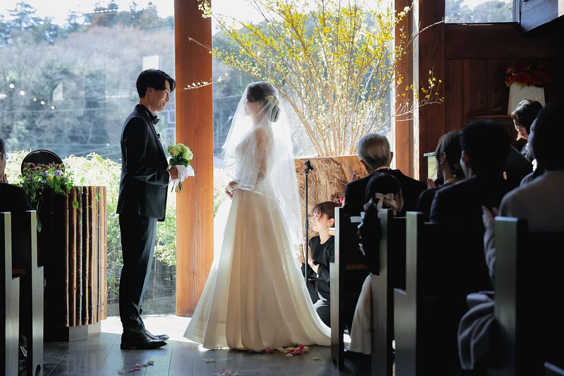 あたたかな結婚式が2月の終わりの晴れた日に