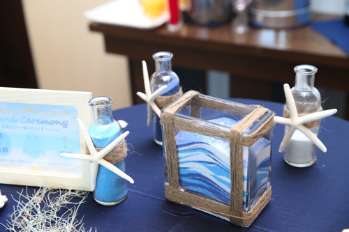 そして、披露宴演出のサンドセレモニーで使用するカラーサンドもウエルカムグッズの一部としてゲストをお出迎えしました。
