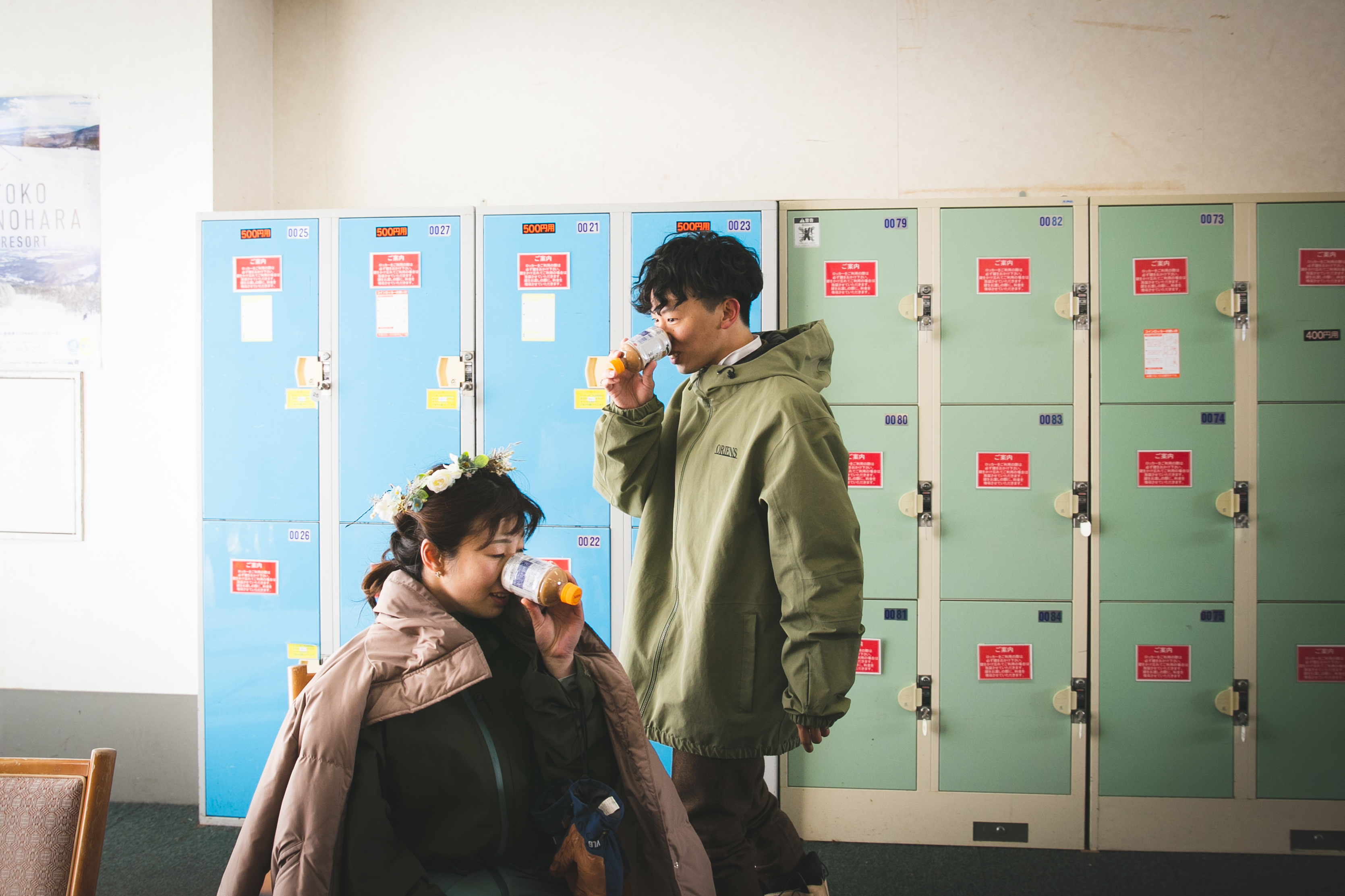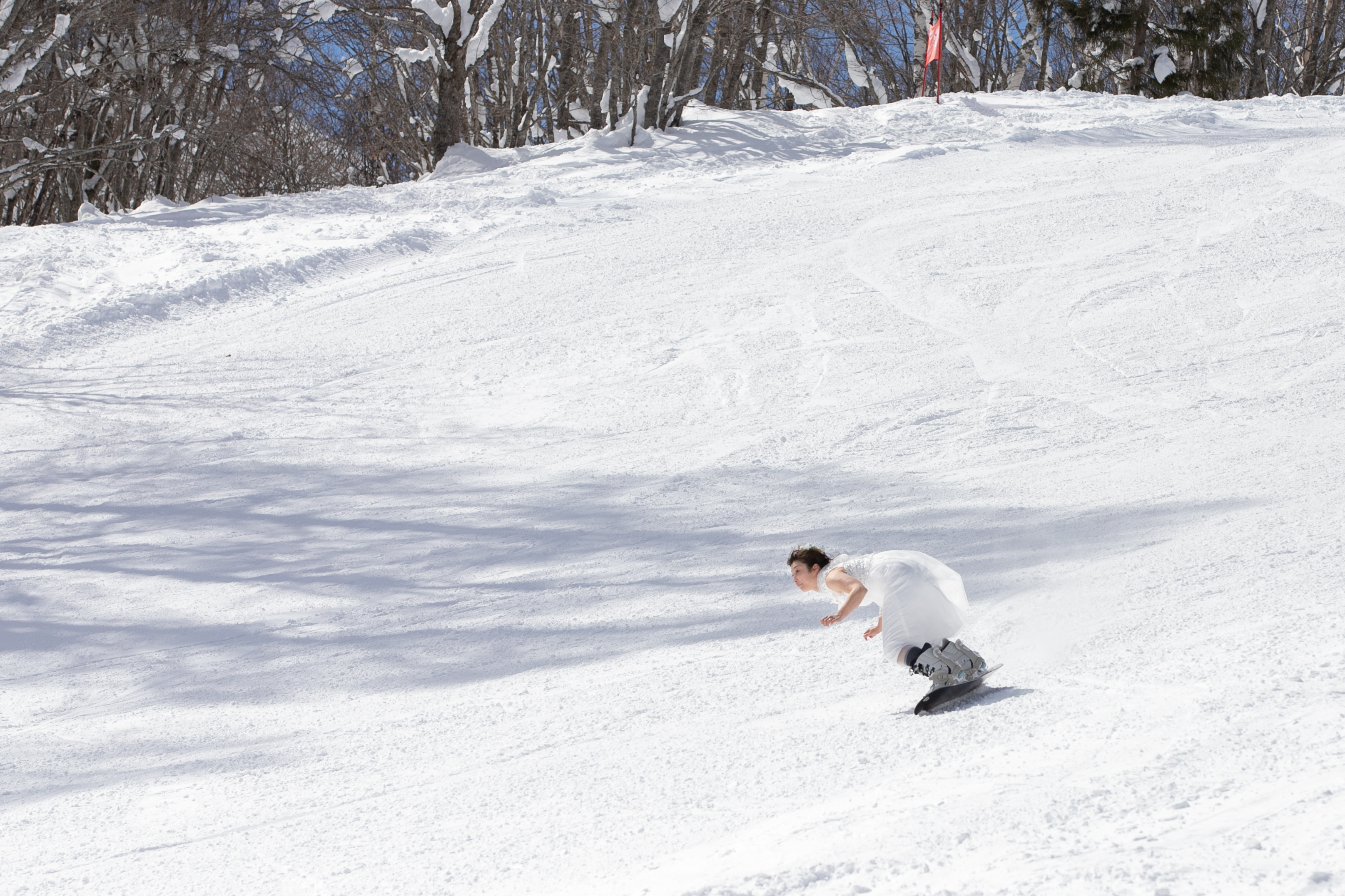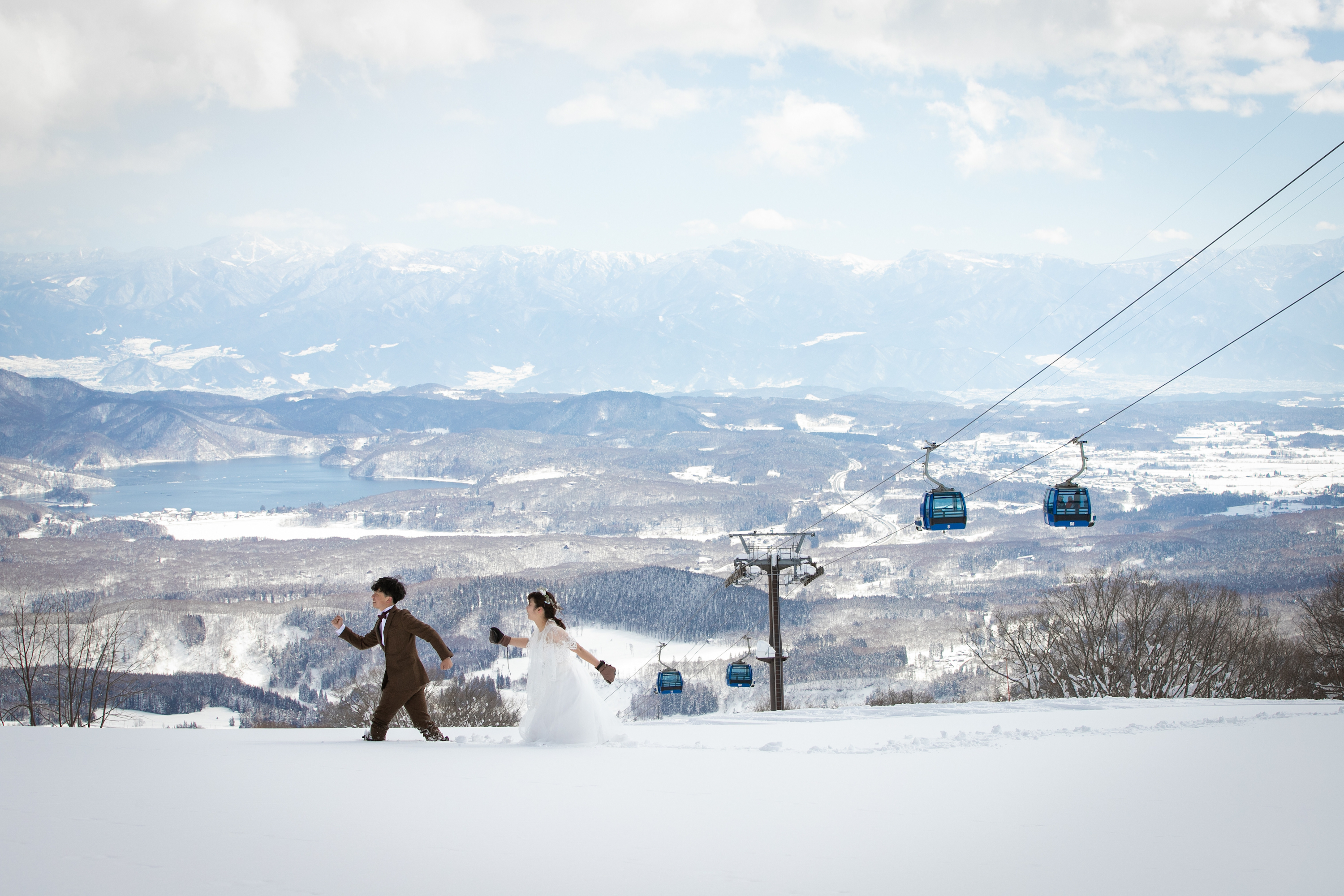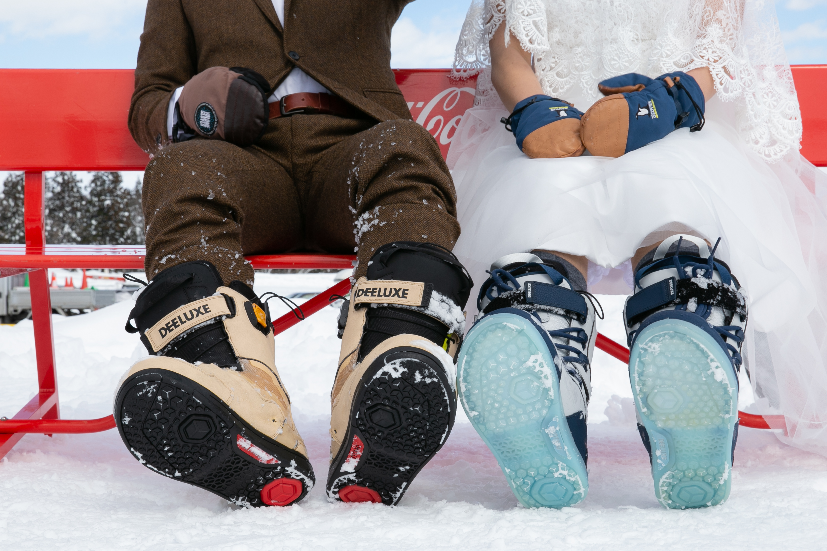 ドレス、スーツはお二人のお持ち込み。 ブーケなどは持たずに撮影しました。 スナップカメラマンもムービーカメラマンも 結婚式のこともわかるスノーボートもできる方なので カメラ機材を持ち滑りながらの撮影。