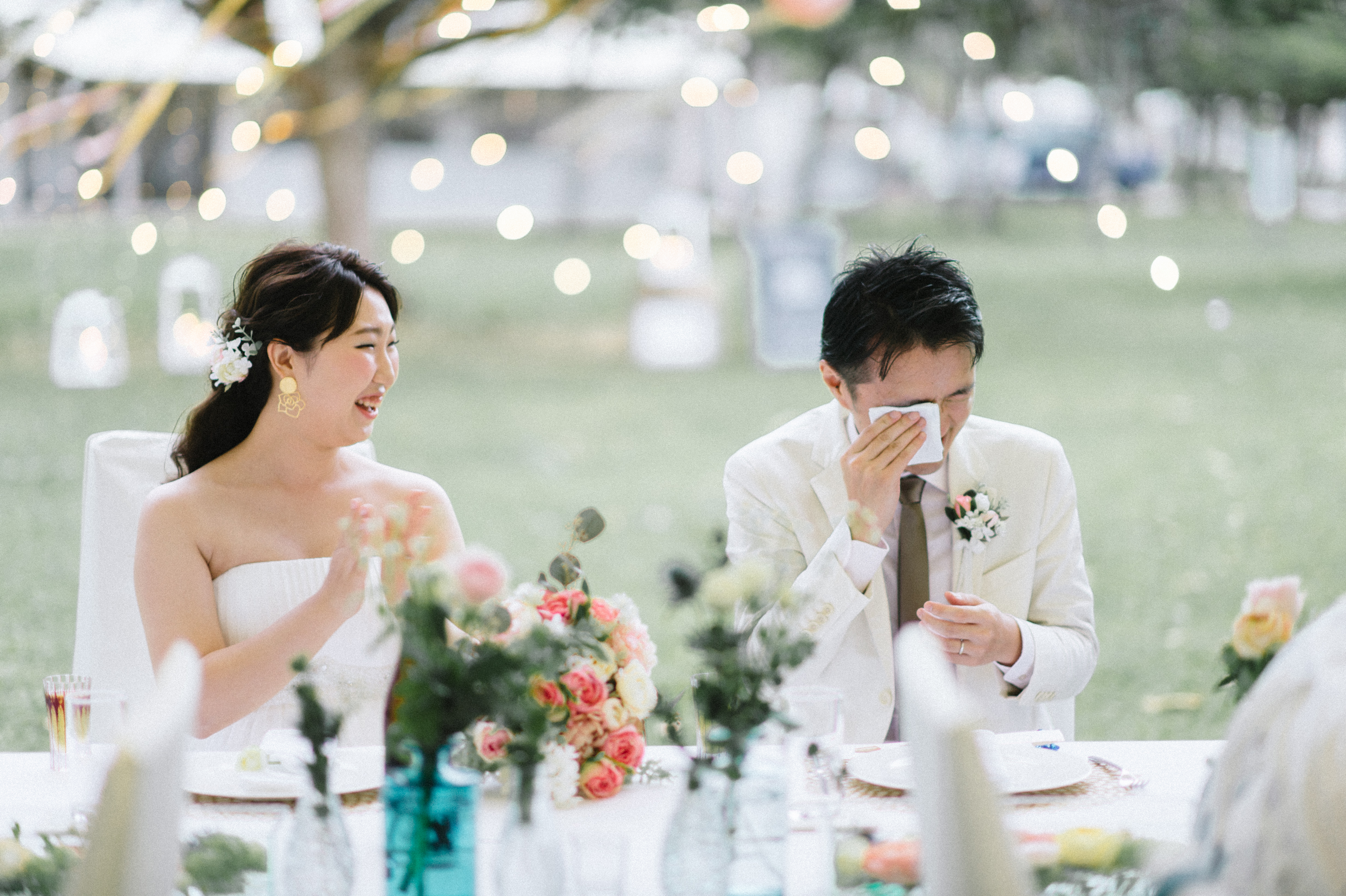 海外ご出身の新郎様。お互いに国際経験が豊富で自分達のウェディングでは、日本での決まりとか固定概念は無くしたい。「自由に楽しく自分達らしく」がキーワード。