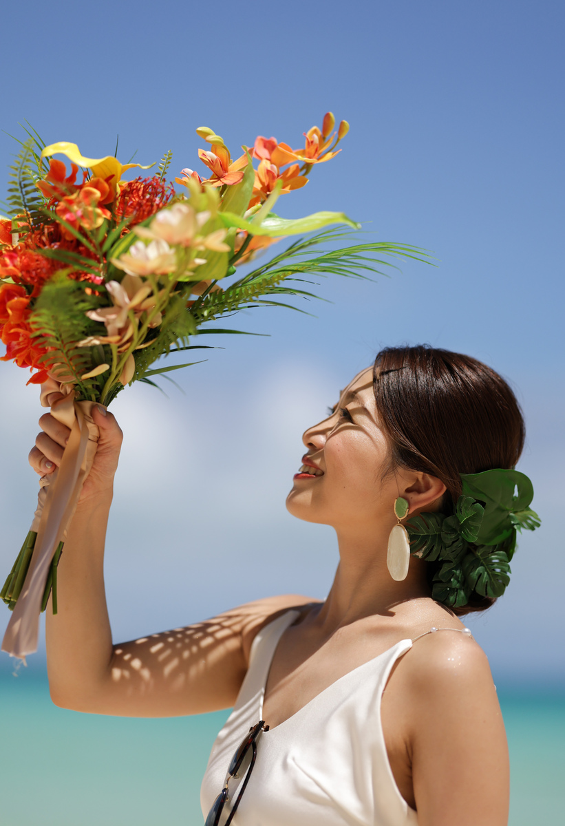 ブーケとヘアードで南国グリーンをふんだんに使用し