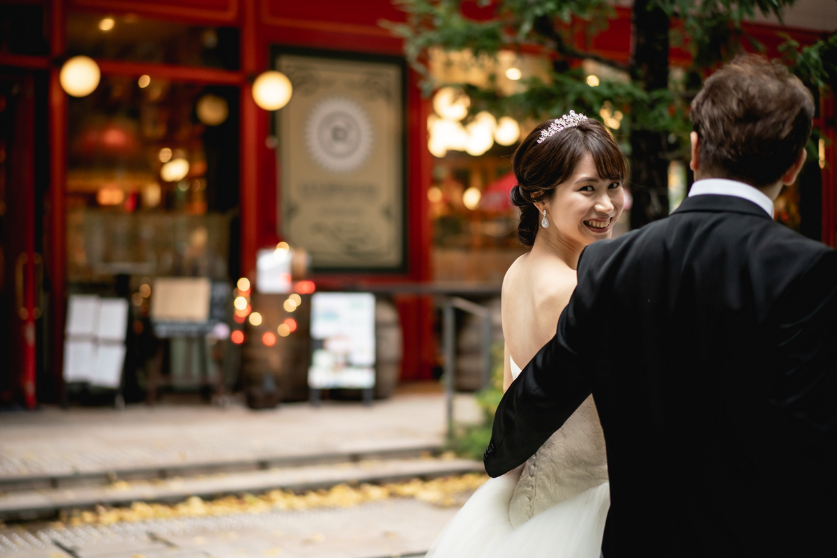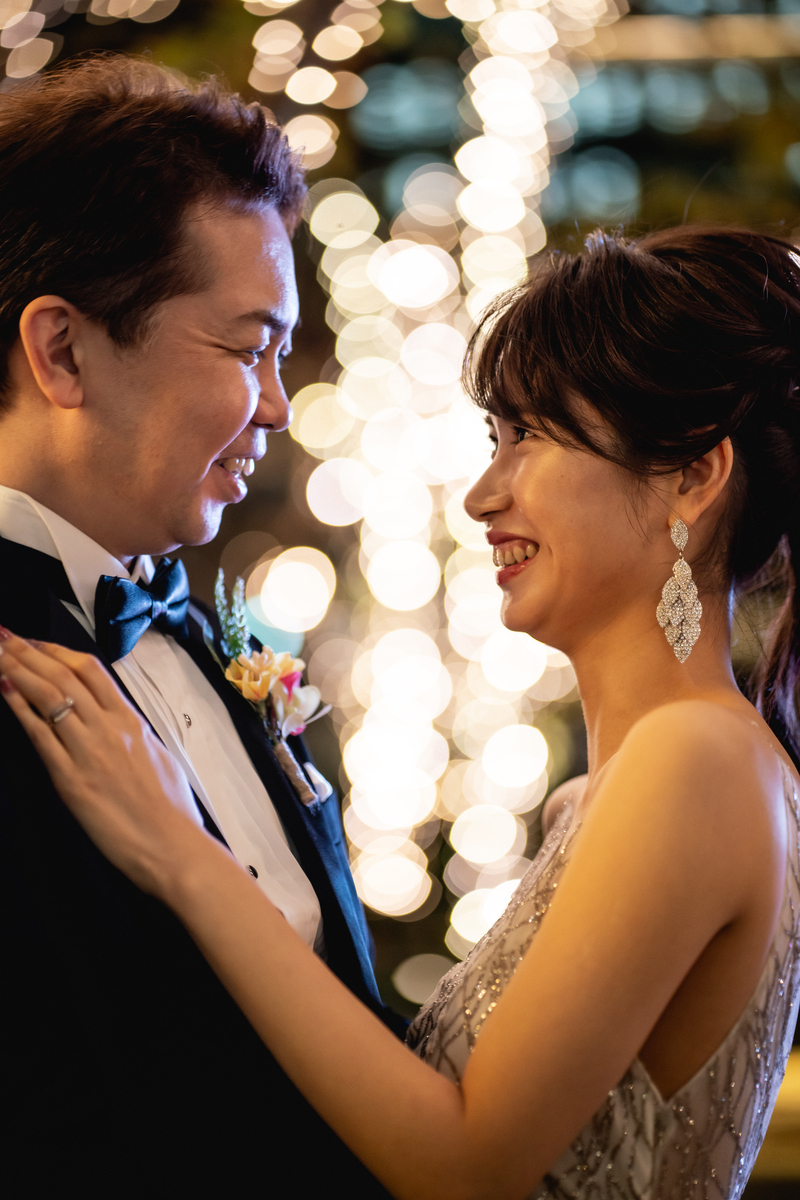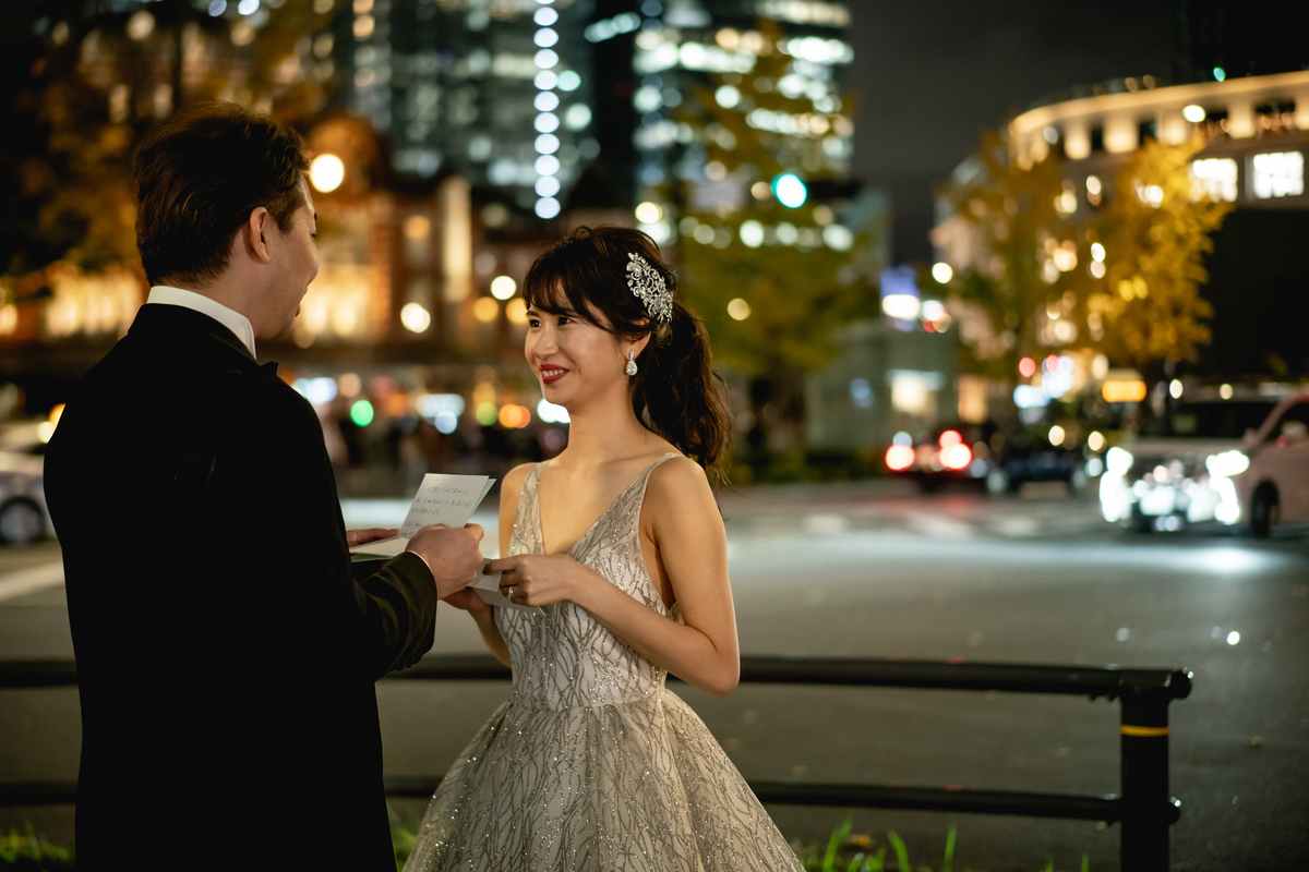 東京駅の前でお二人の誓いの言葉と