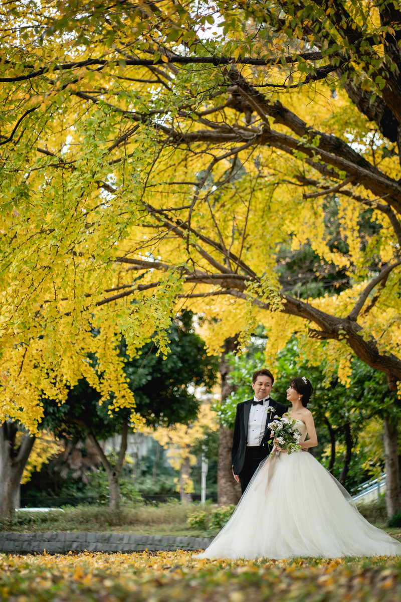 このドレスは銀杏並木で着用予定でしたので